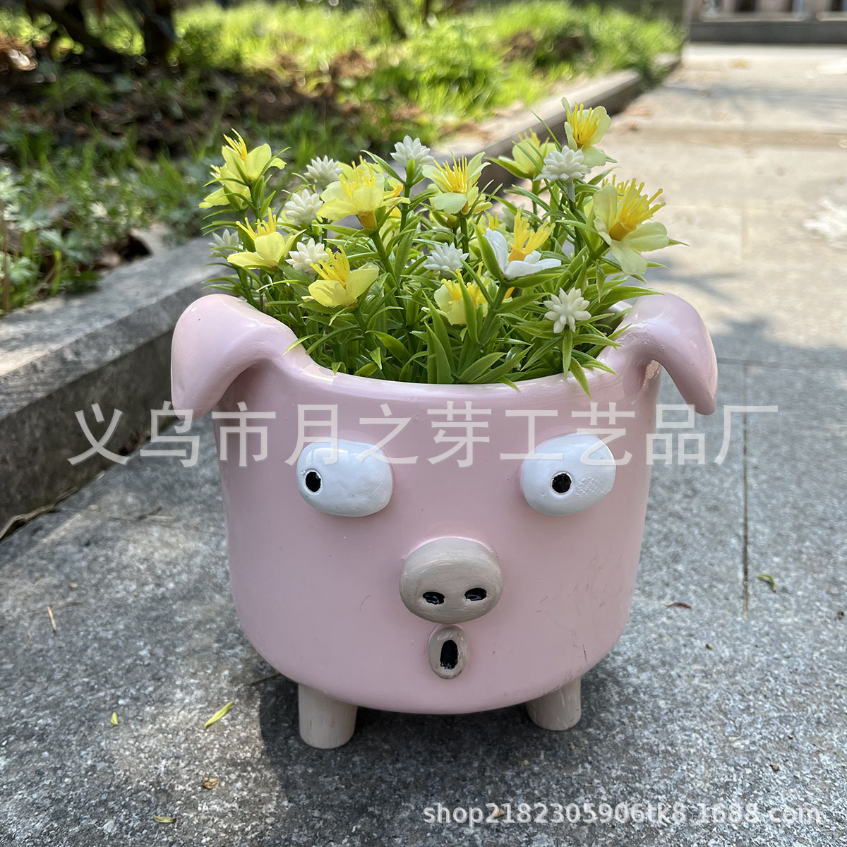 1 조각 귀여운 만화 돼지 모양 꽃 냄비 창조적 인 귀여운 수지 동물 동상 홈 정원 장식