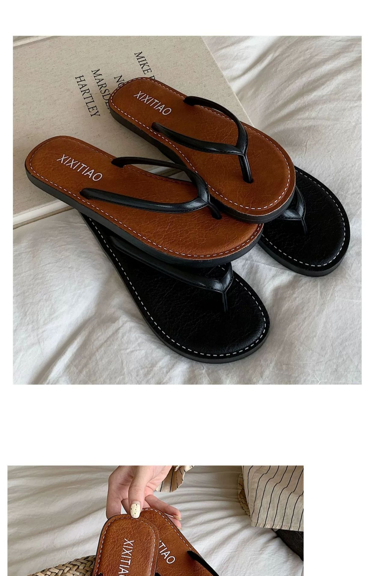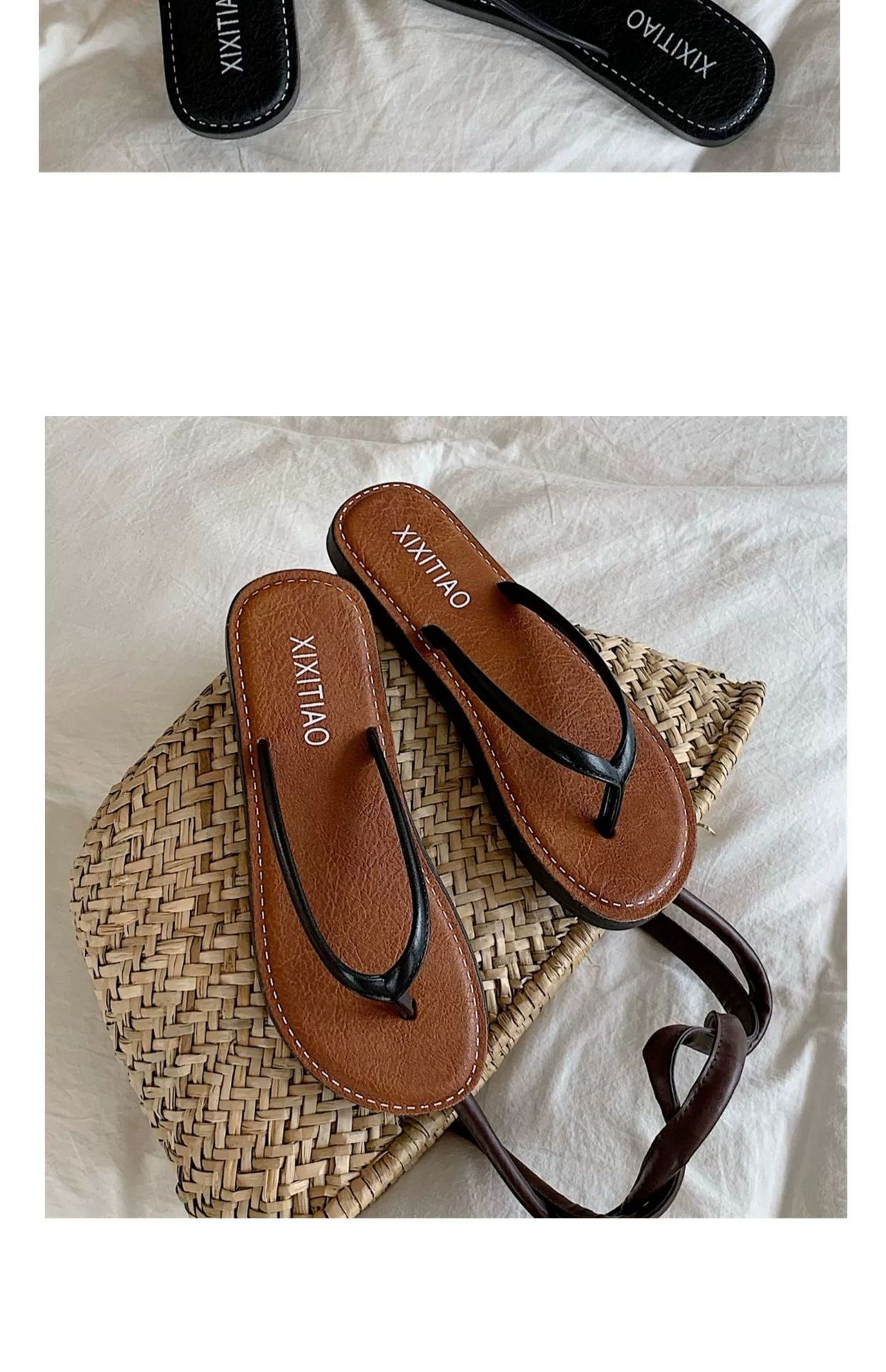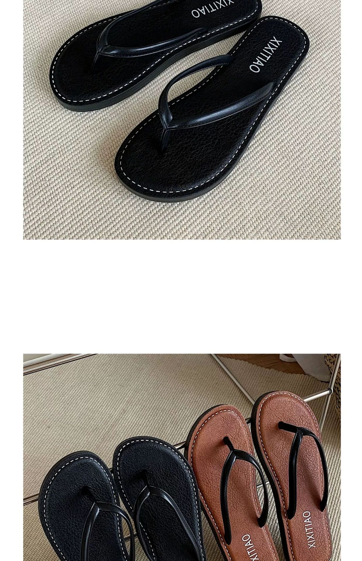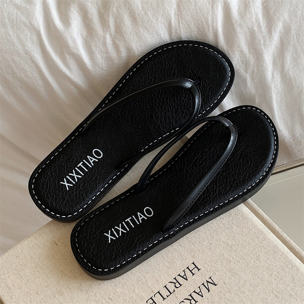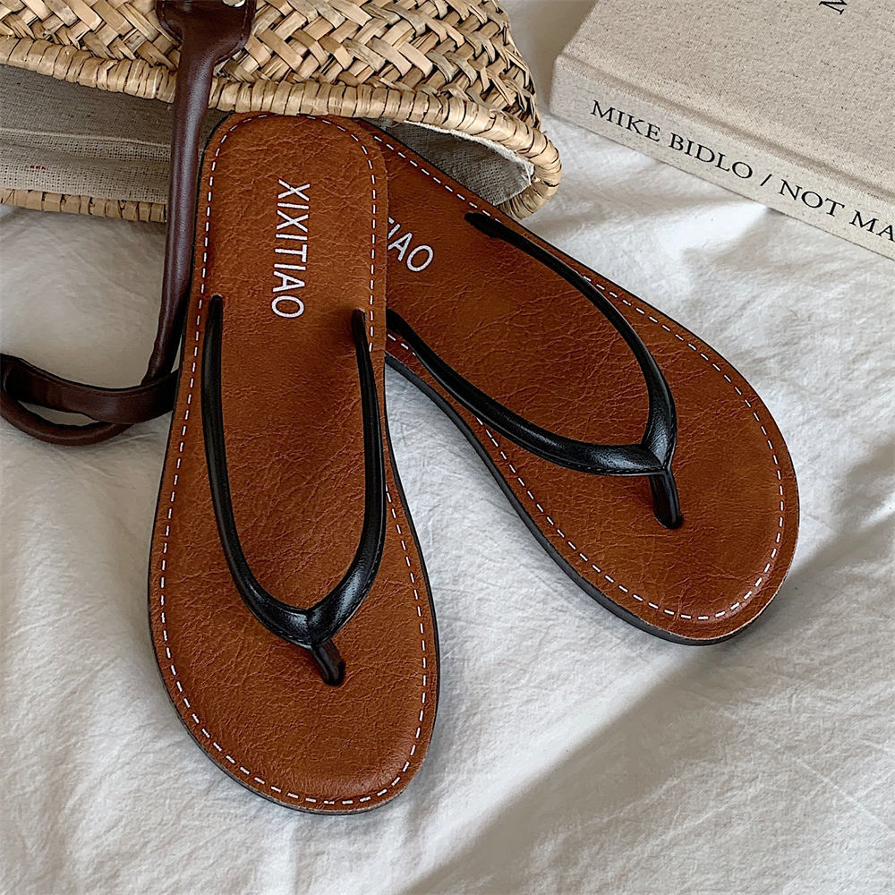 얇은 줄무늬 새로운 한국 스타일 여름 소녀 복고풍 해변 휴가 해변 신발 평면 편안한 플립 플롭스토어 가기