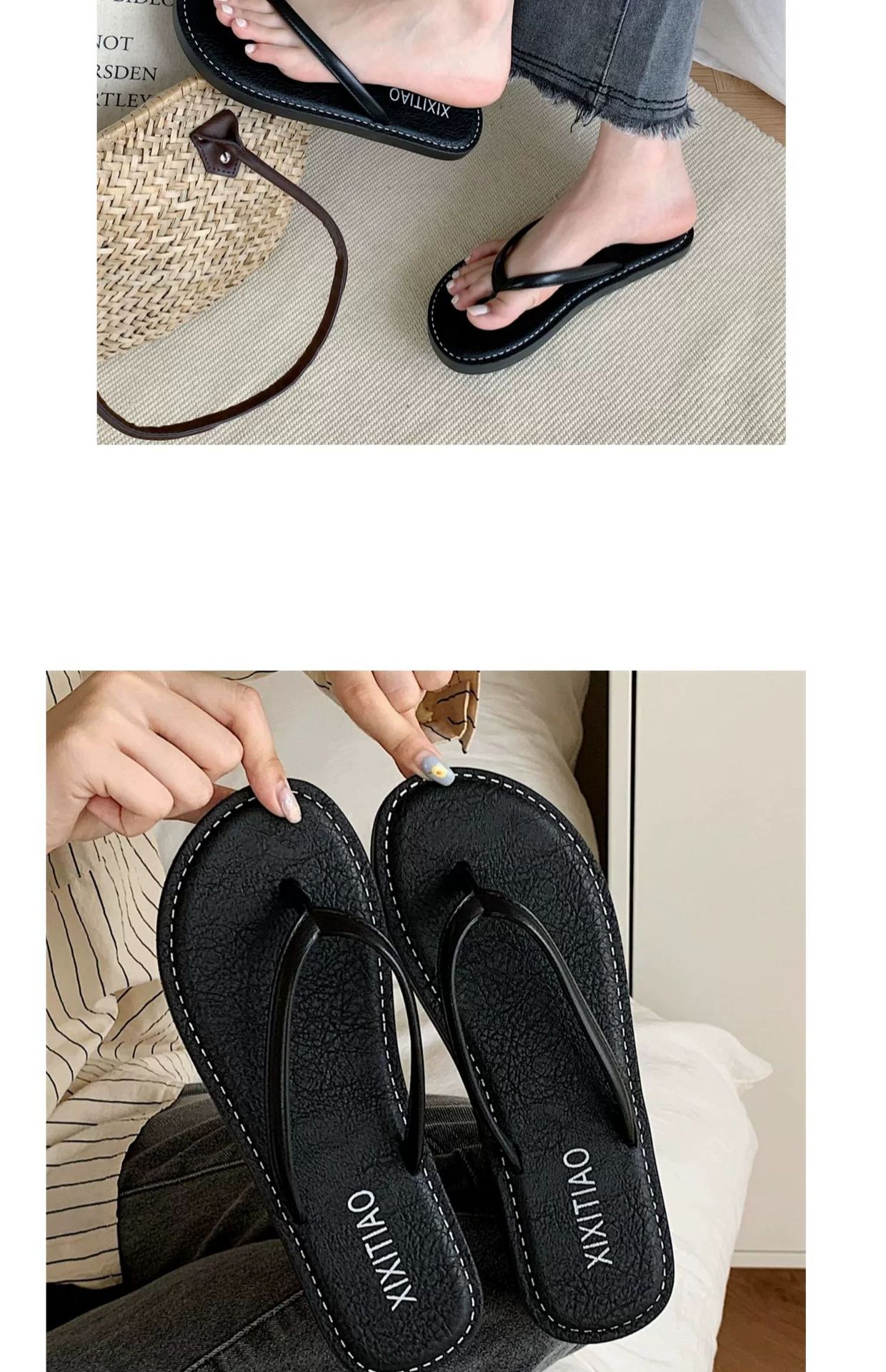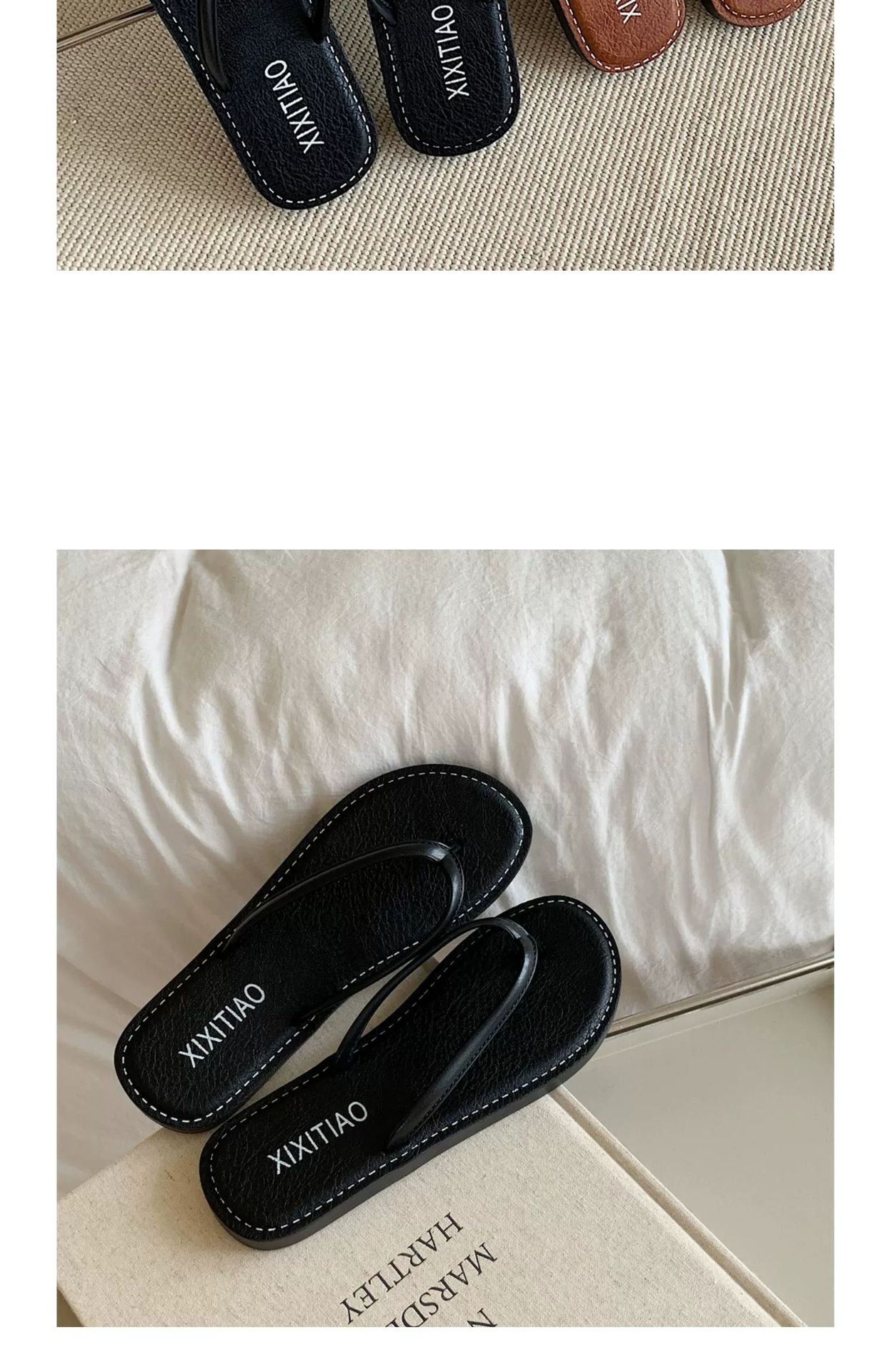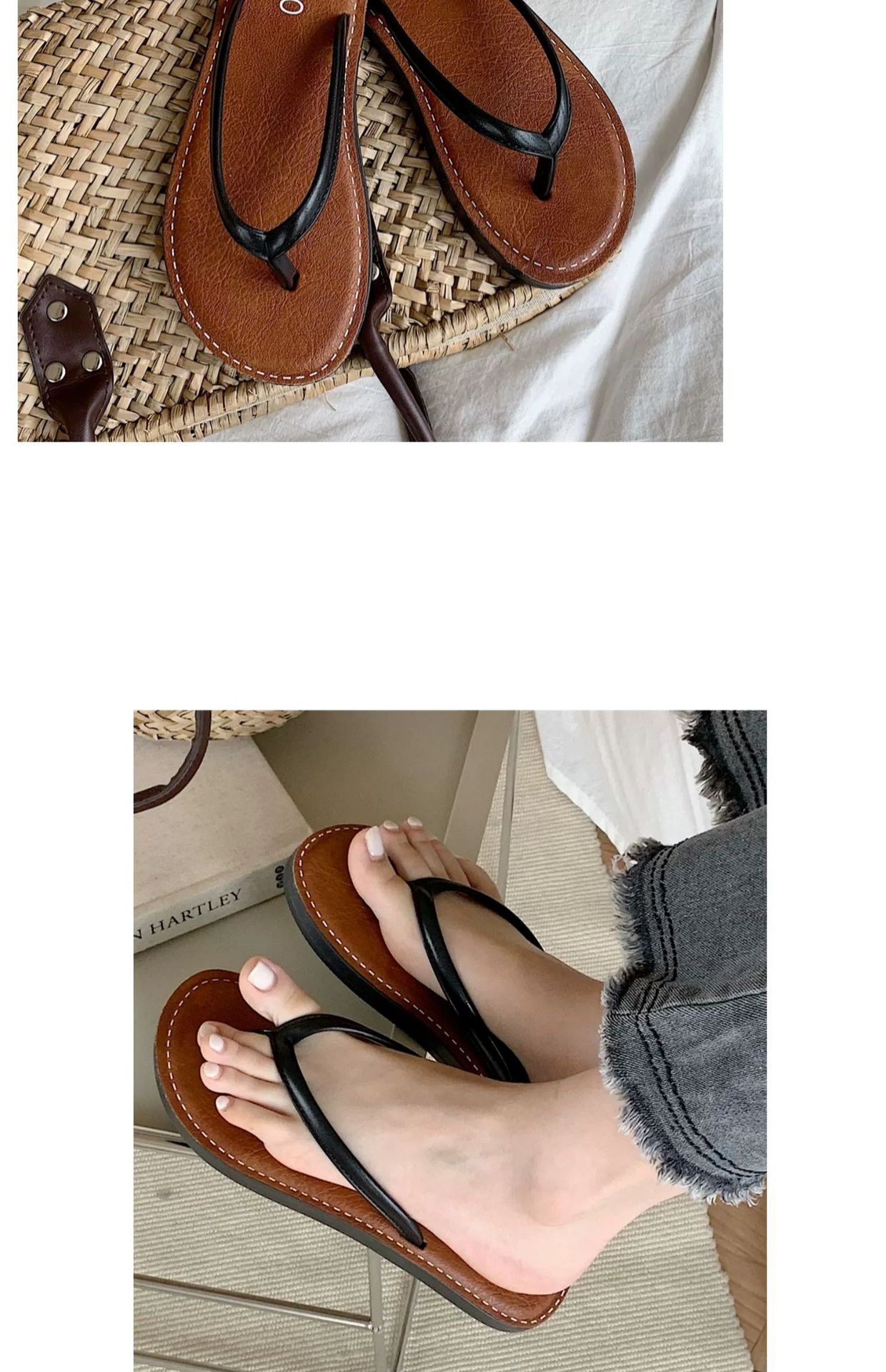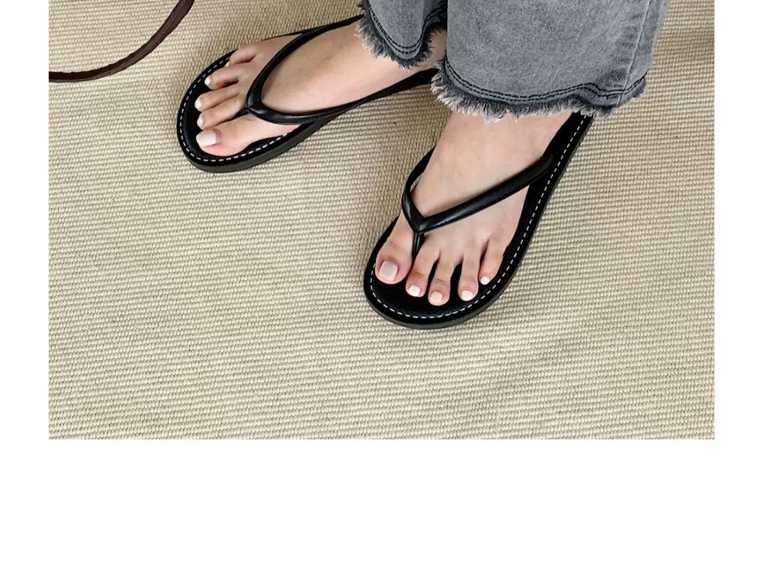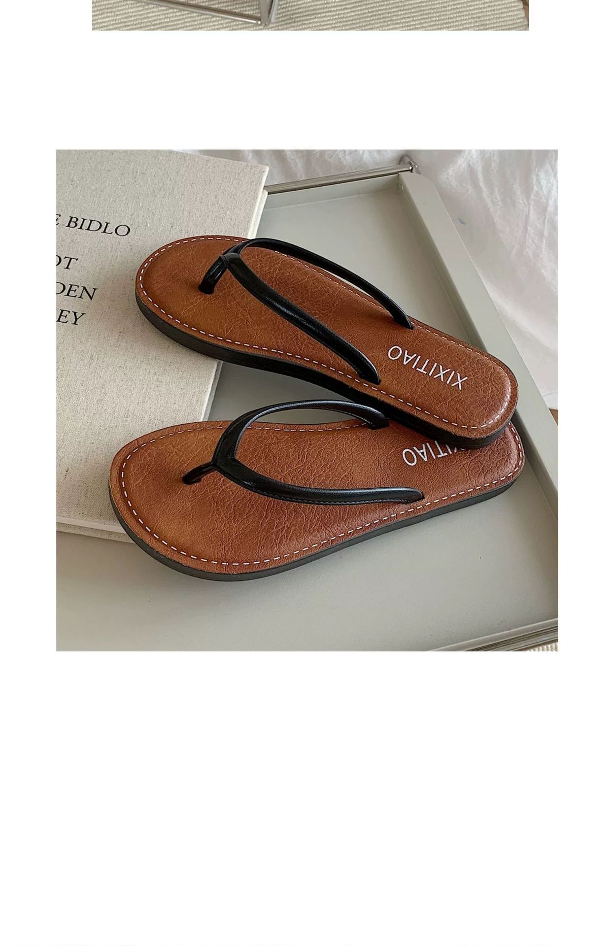 얇은 줄무늬 새로운 한국 스타일 여름 소녀 복고풍 해변 휴가 해변 신발 평면 편안한 플립 플롭스토어 가기
