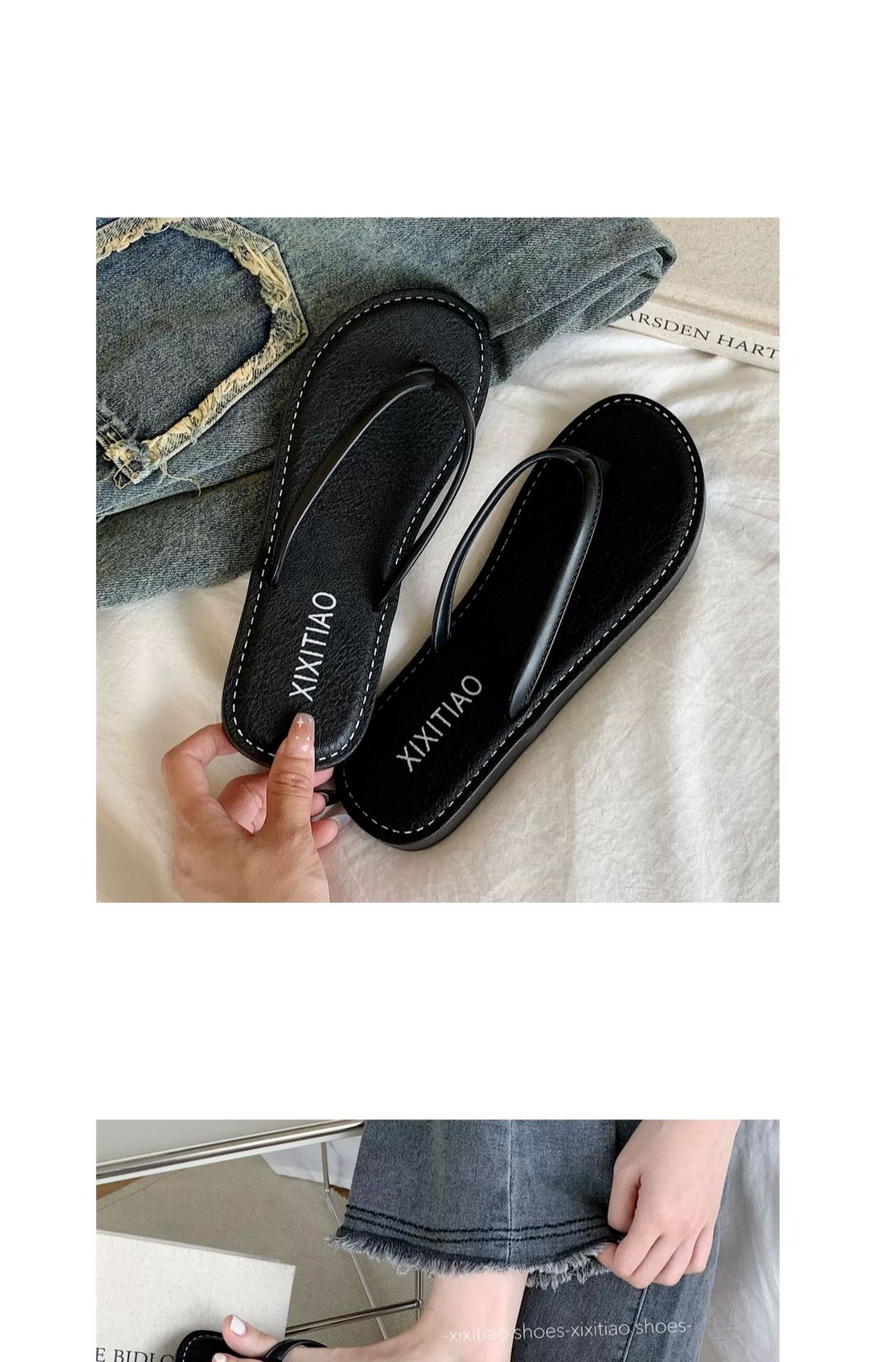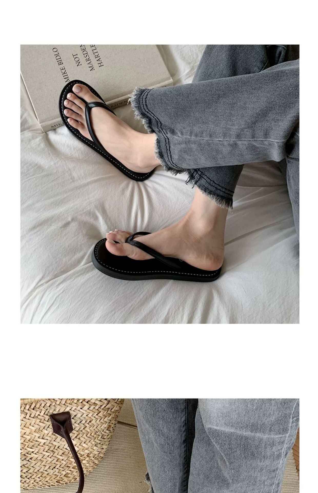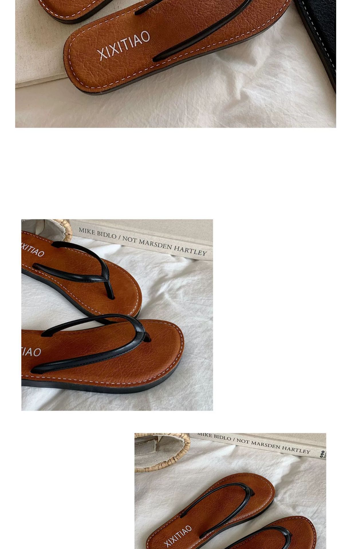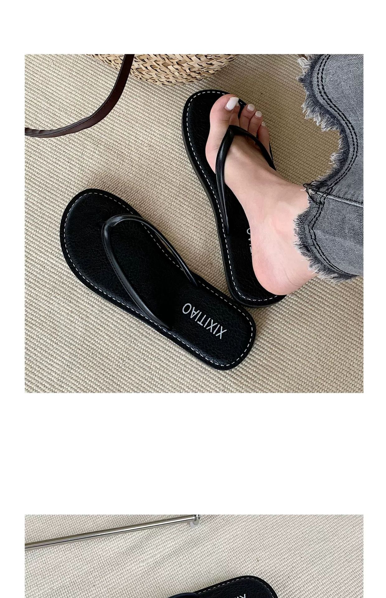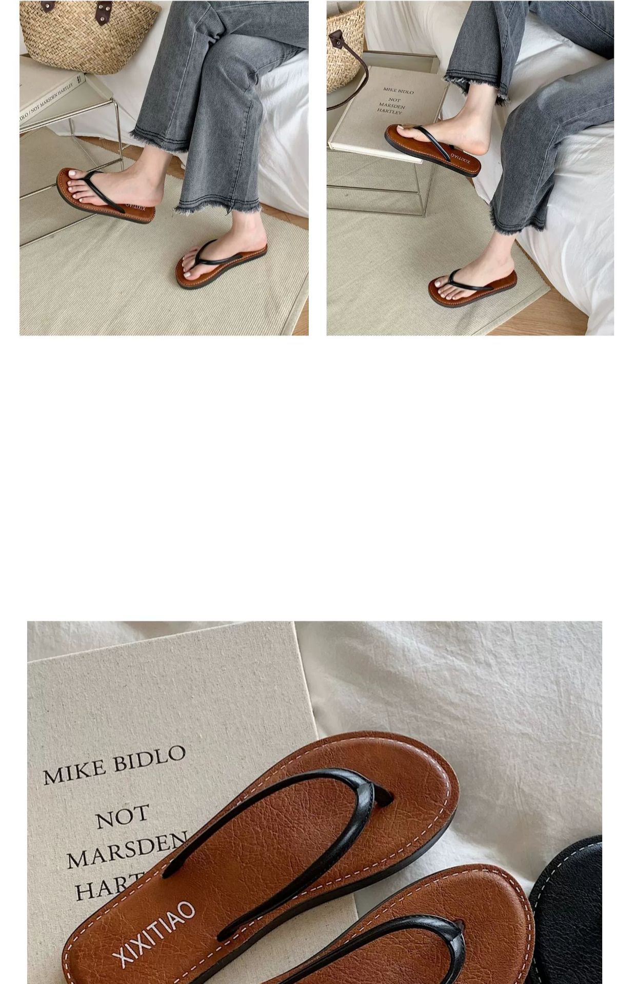 얇은 줄무늬 새로운 한국 스타일 여름 소녀 복고풍 해변 휴가 해변 신발 평면 편안한 플립 플롭스토어 가기