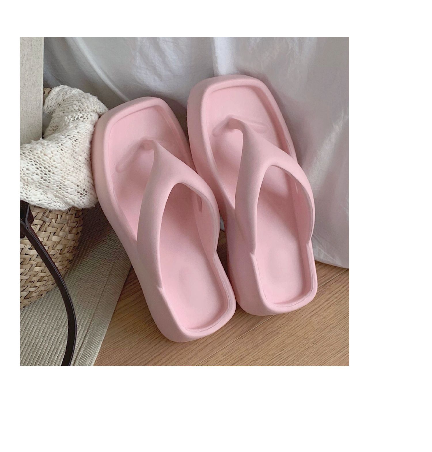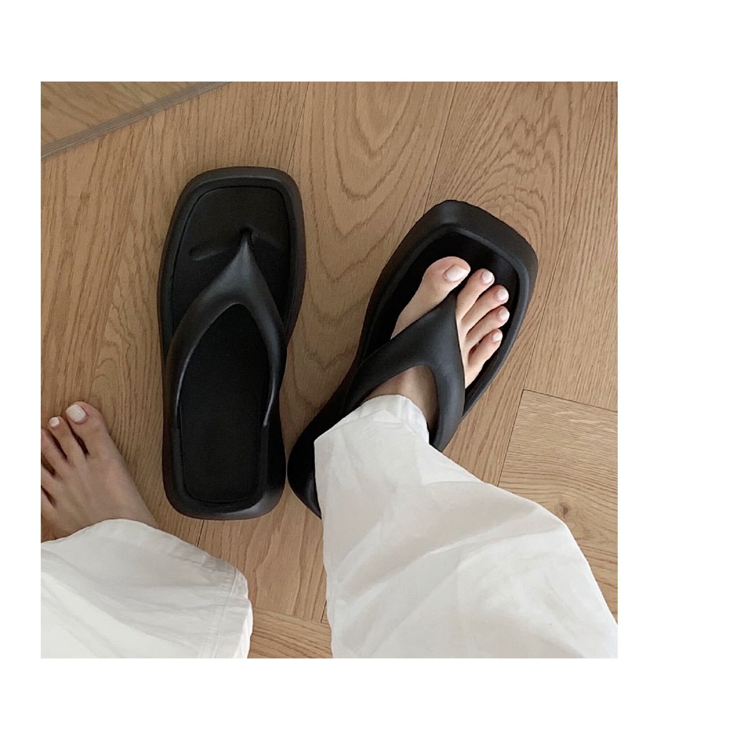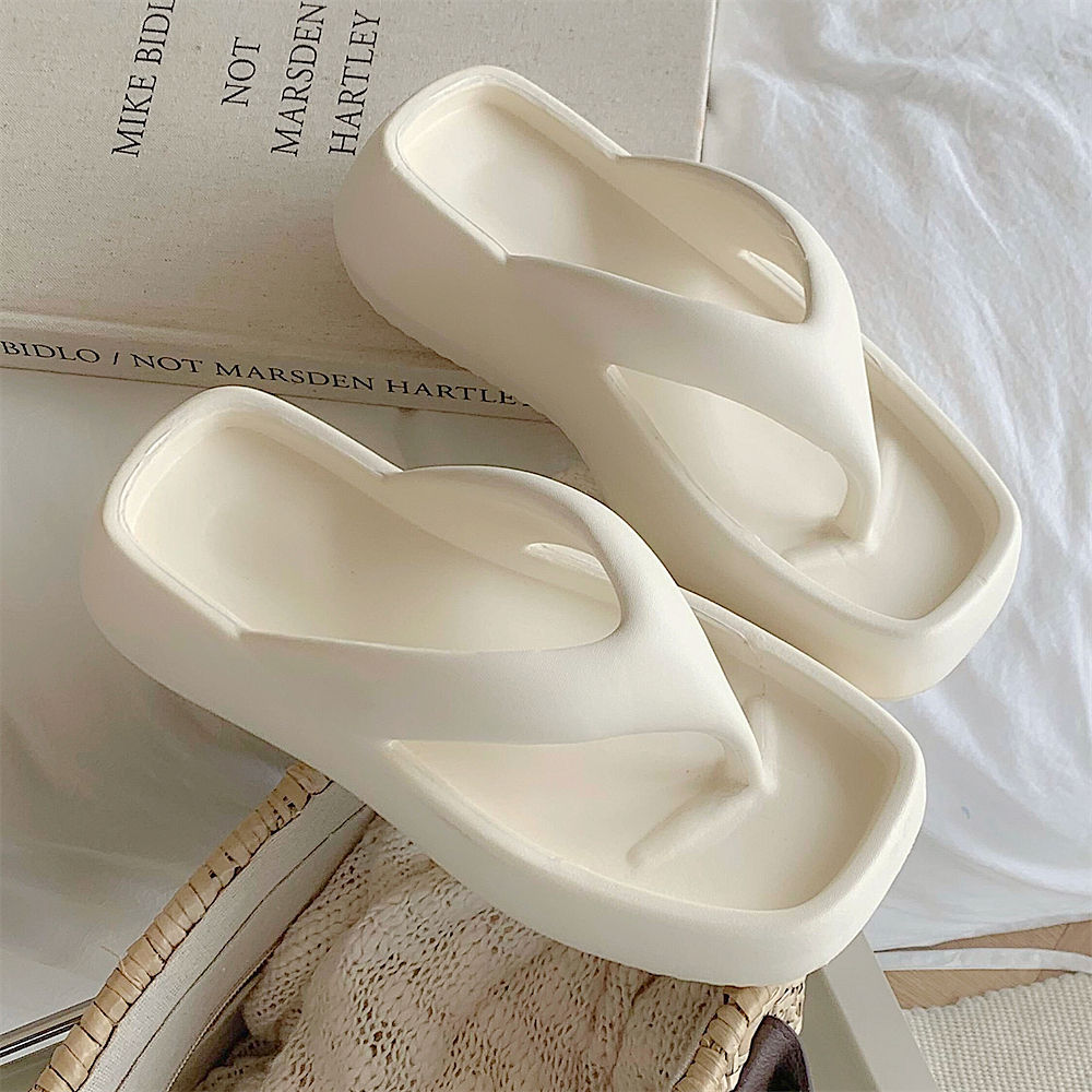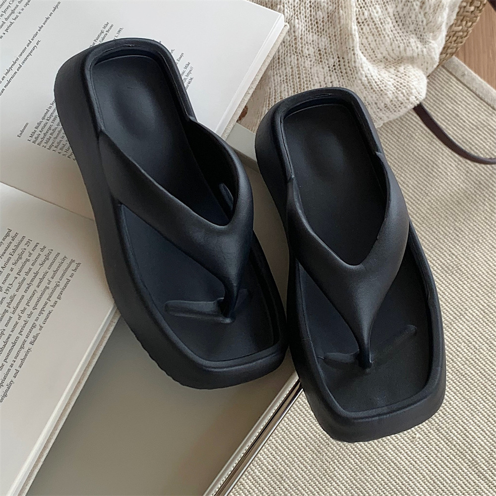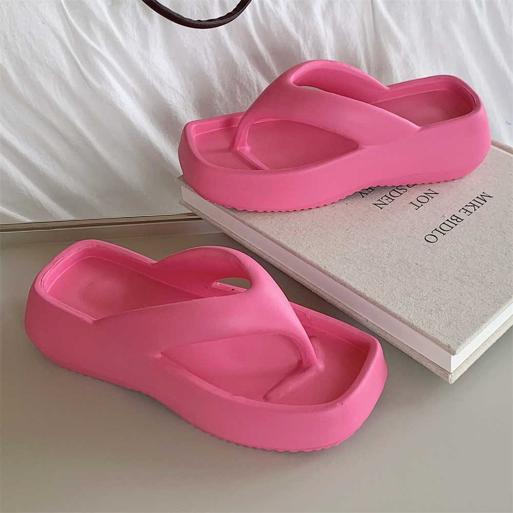 얇은 줄무늬 한국 스타일의 새로운 여름 소녀 온라인 유명 인사 단색 높이 증가 발 뒤꿈치 EVA 똥 느낌 휴일 해변 플립 플롭스토어 가기