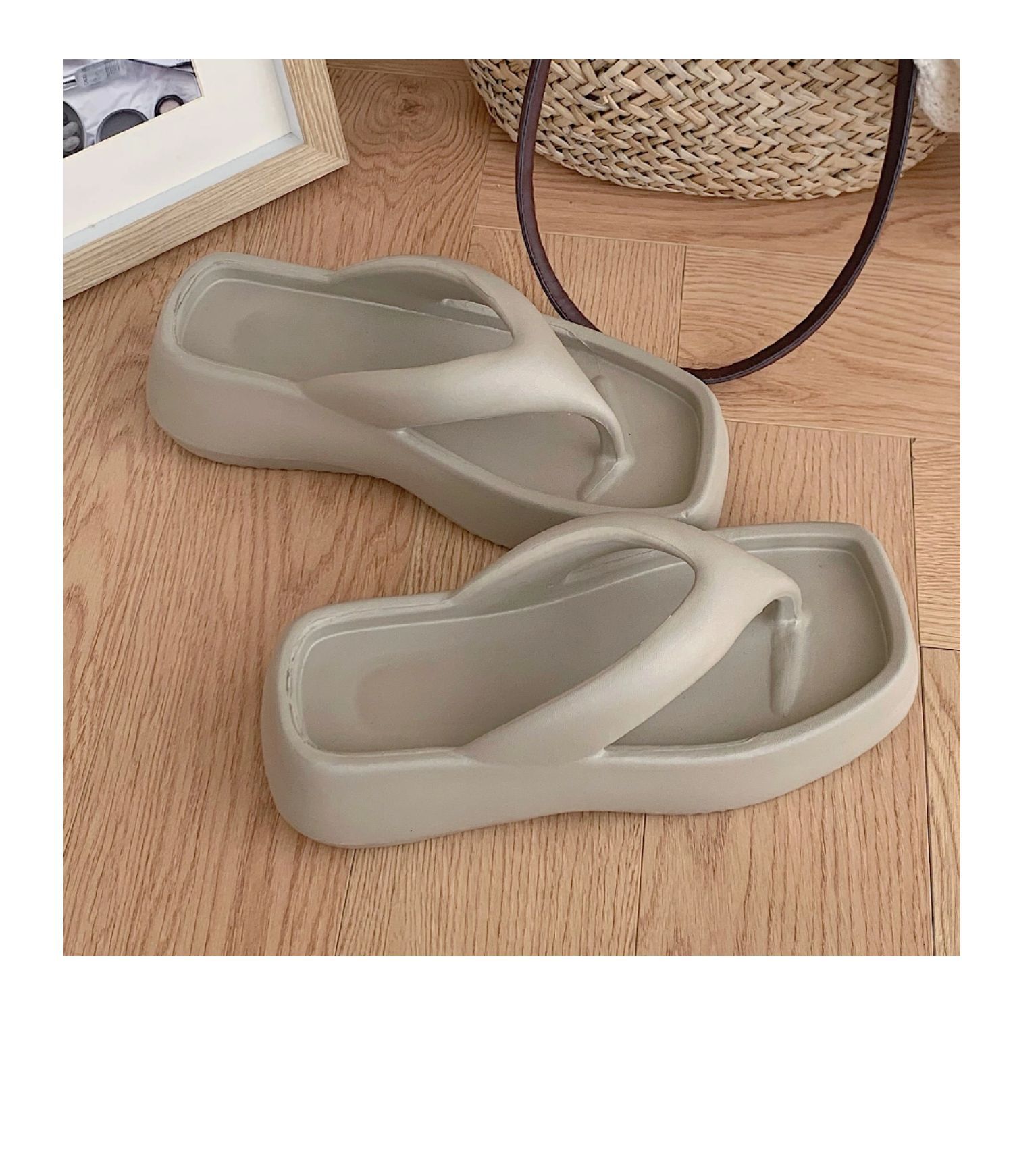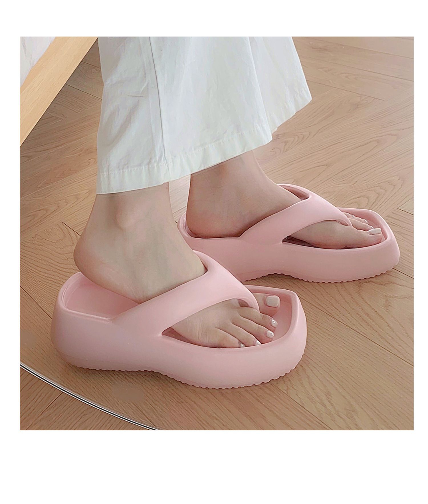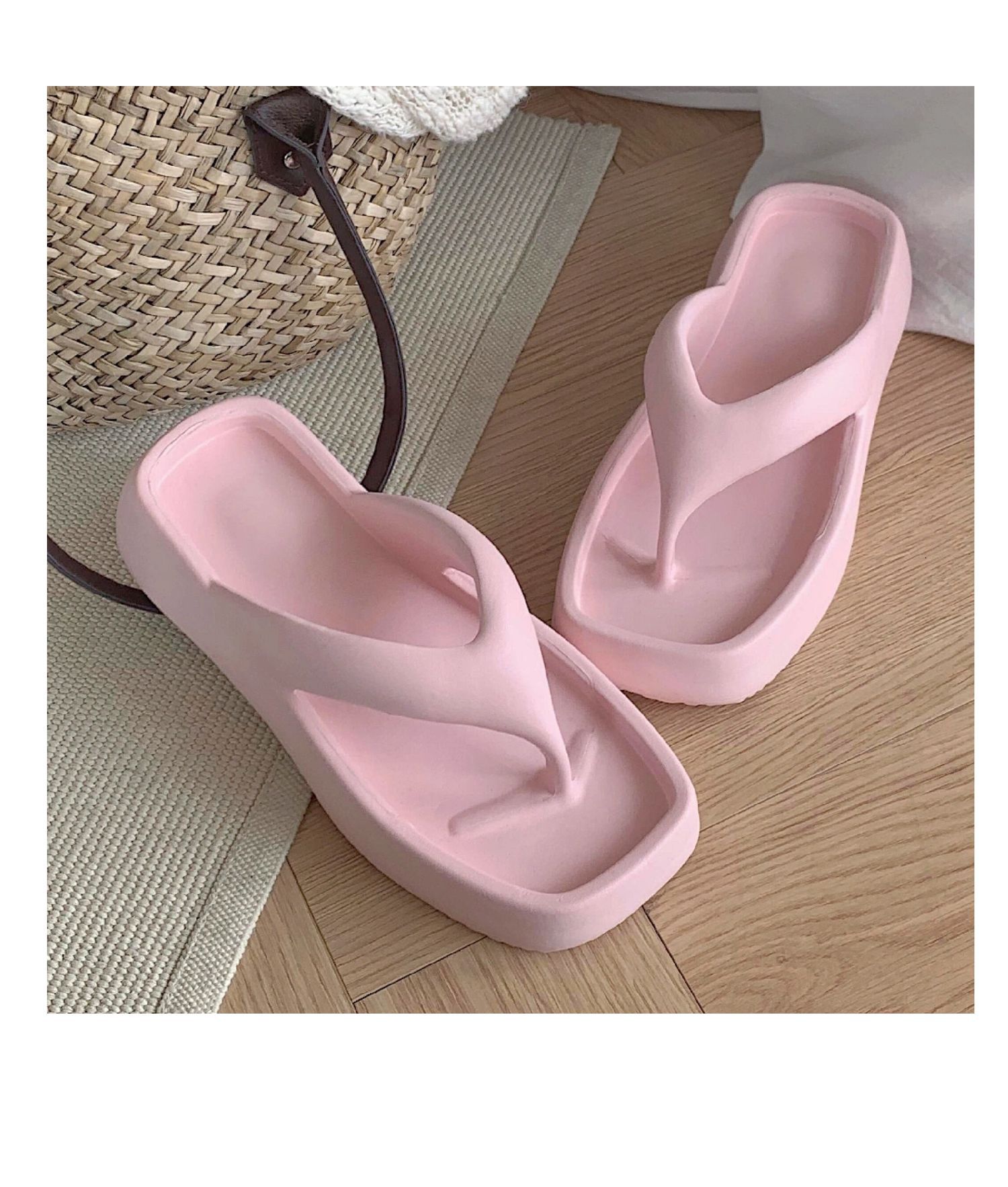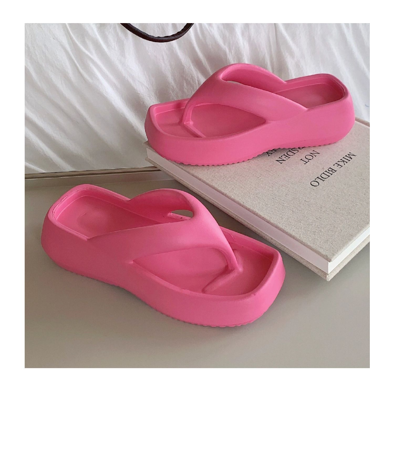 얇은 줄무늬 한국 스타일의 새로운 여름 소녀 온라인 유명 인사 단색 높이 증가 발 뒤꿈치 EVA 똥 느낌 휴일 해변 플립 플롭스토어 가기