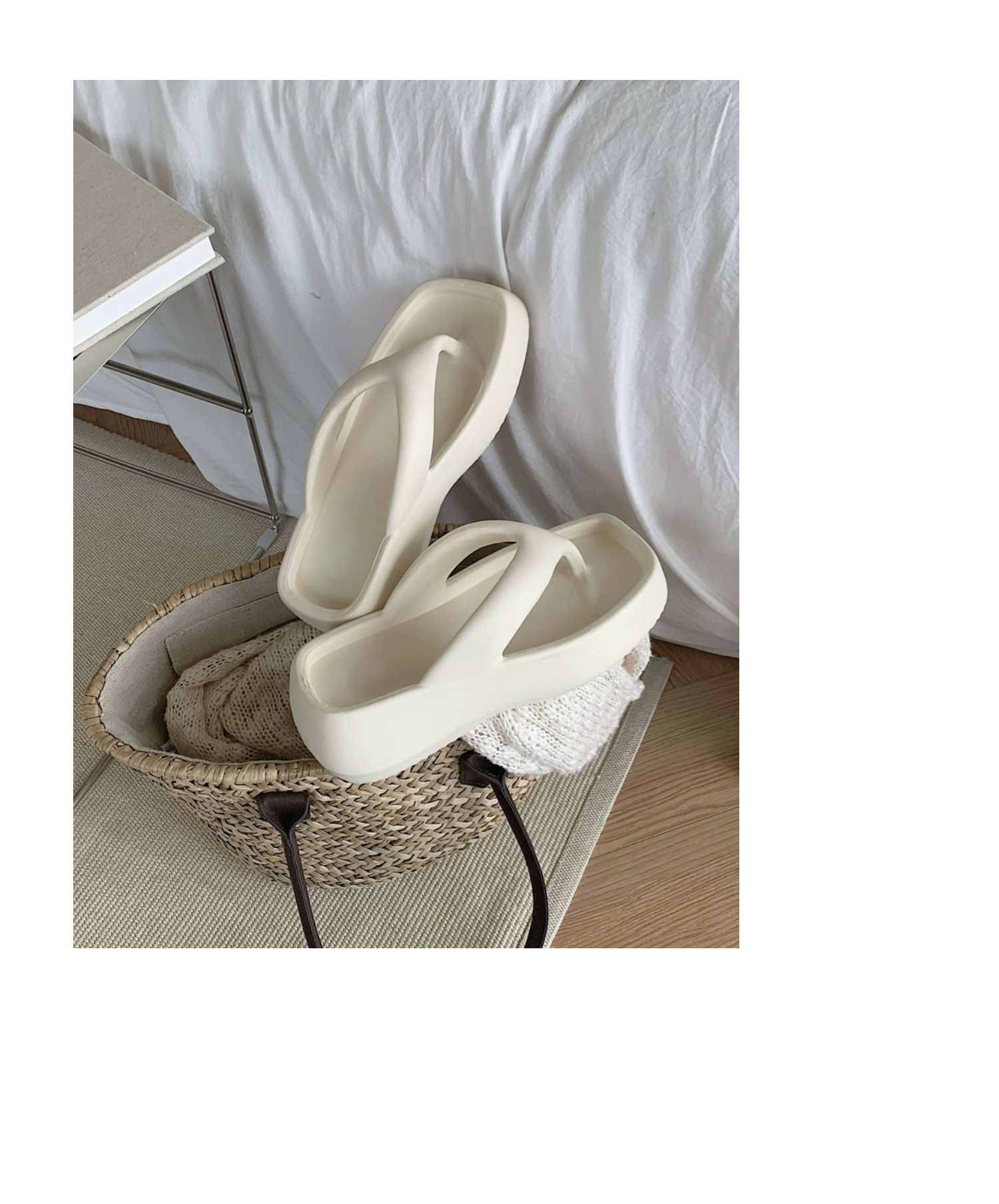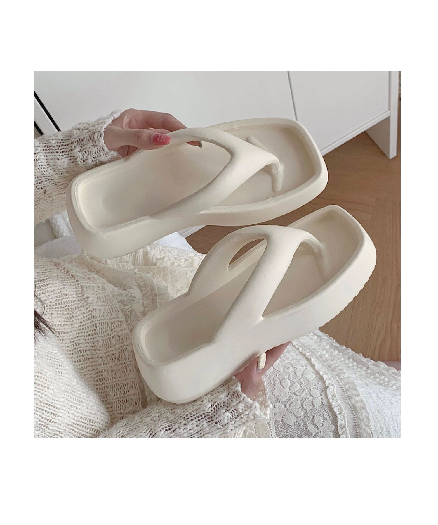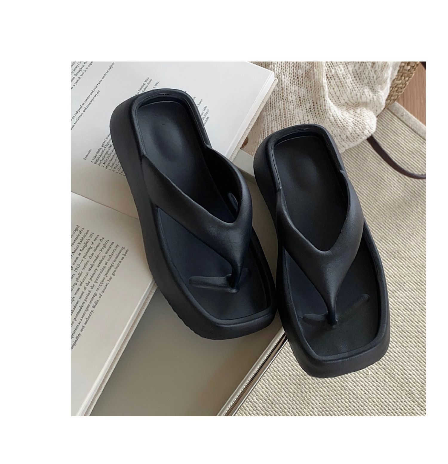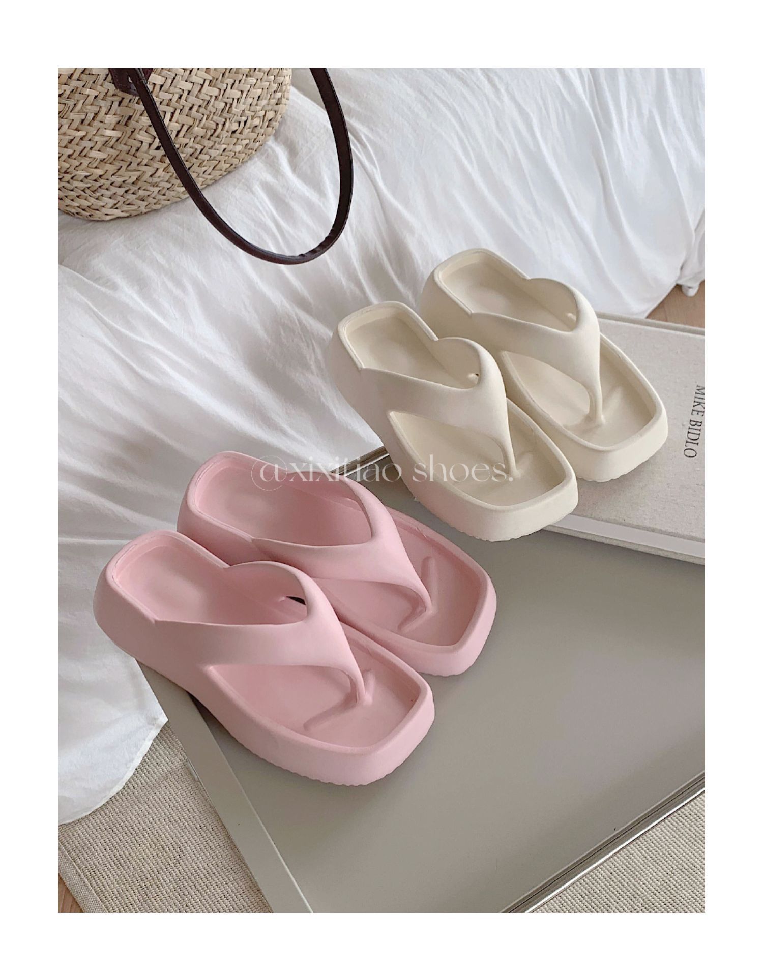얇은 줄무늬 한국 스타일의 새로운 여름 소녀 온라인 유명 인사 단색 높이 증가 발 뒤꿈치 EVA 똥 느낌 휴일 해변 플립 플롭스토어 가기