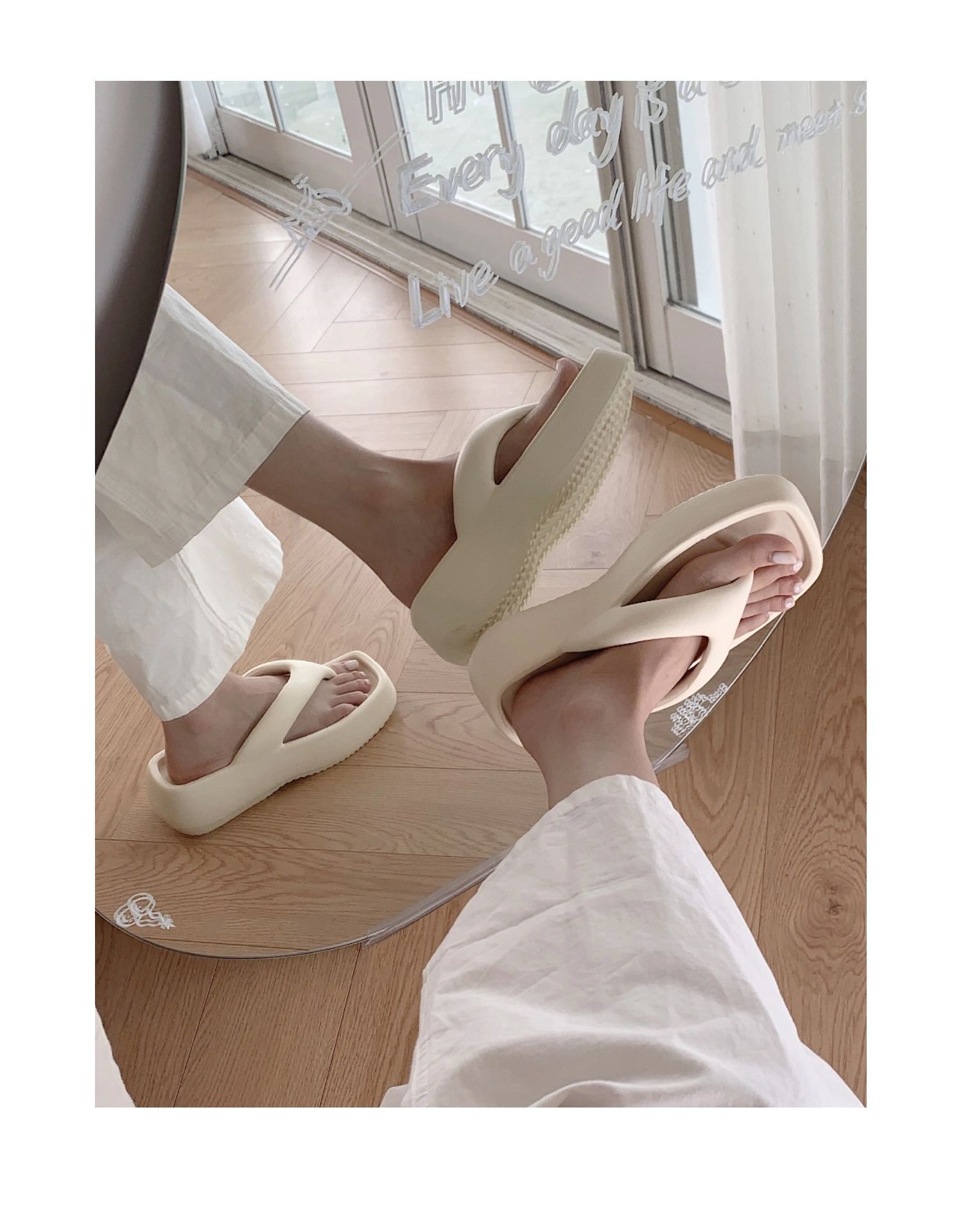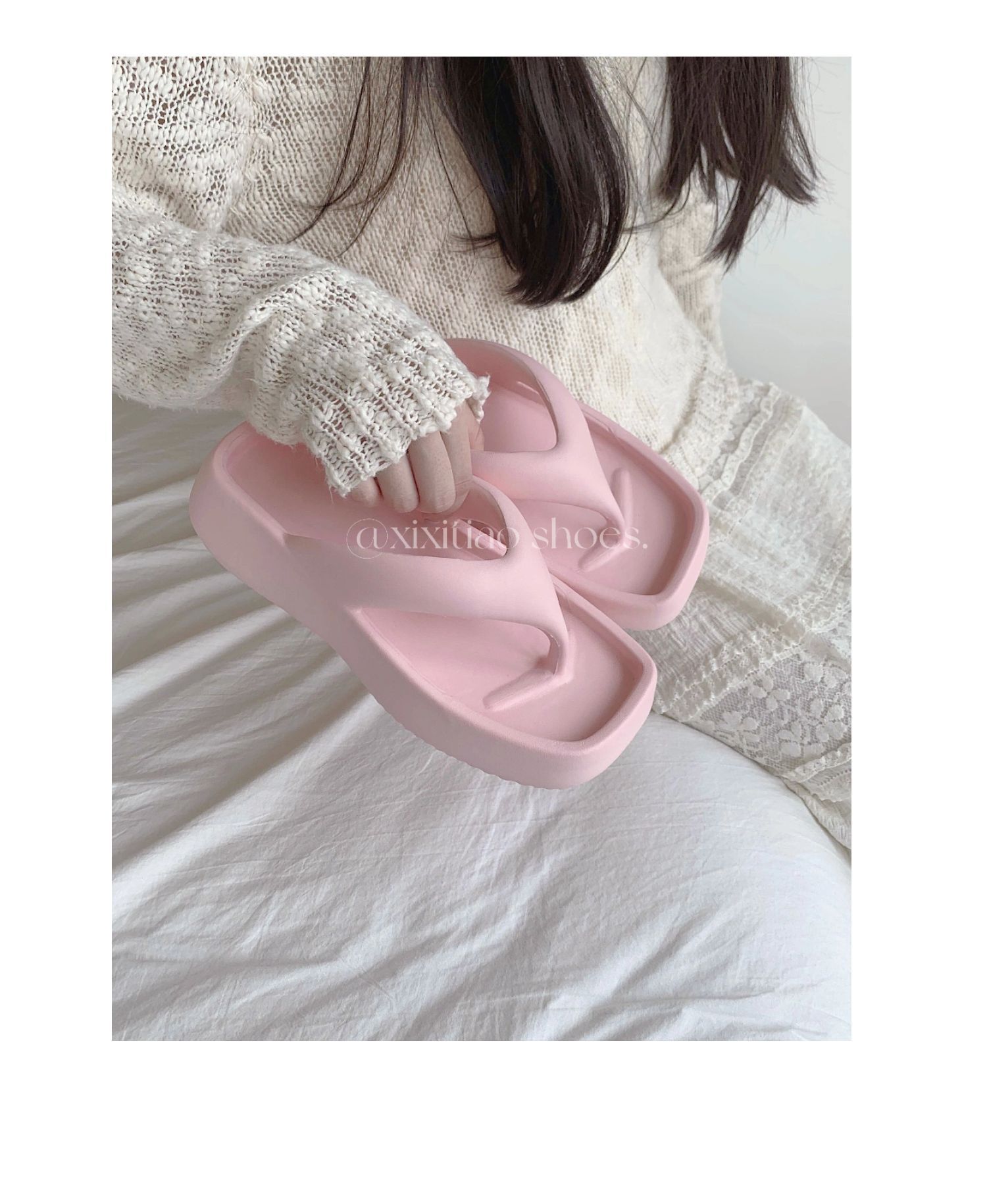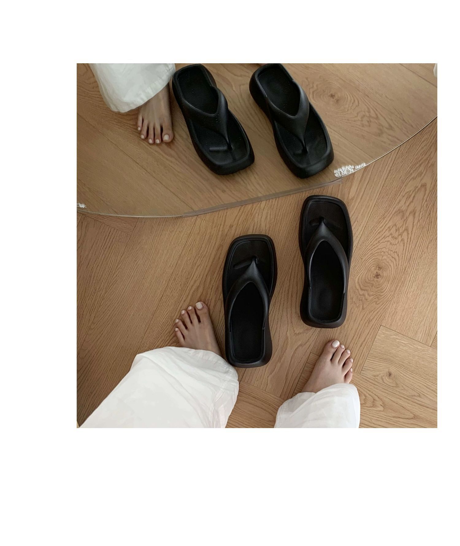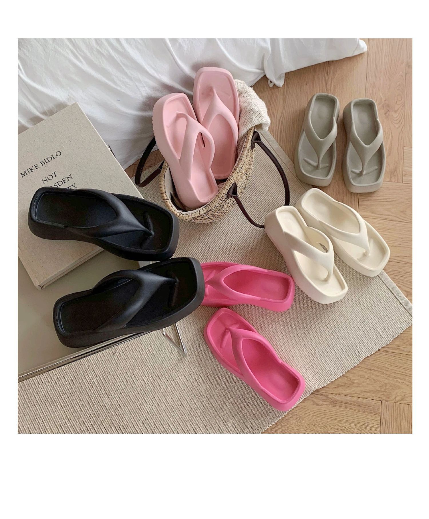 얇은 줄무늬 한국 스타일의 새로운 여름 소녀 온라인 유명 인사 단색 높이 증가 발 뒤꿈치 EVA 똥 느낌 휴일 해변 플립 플롭스토어 가기