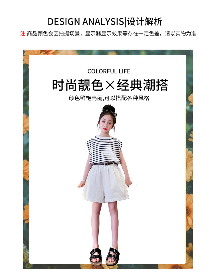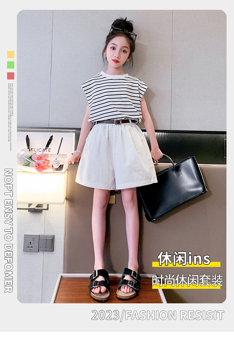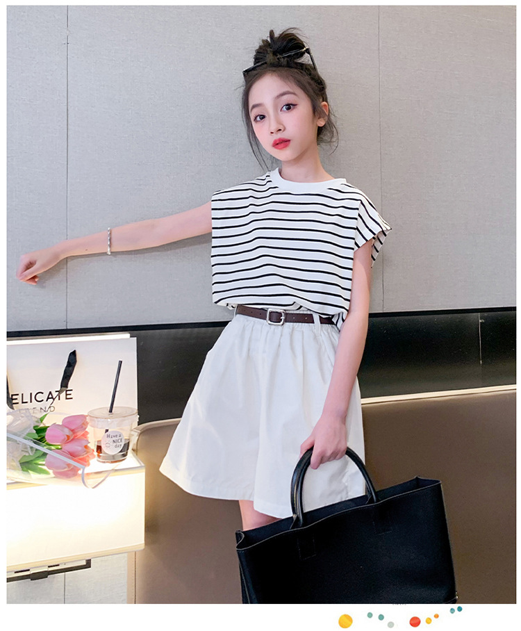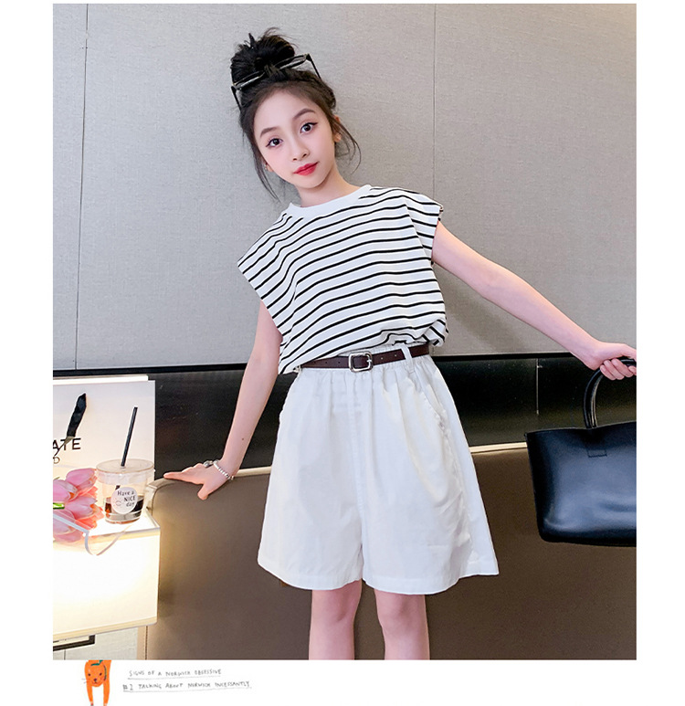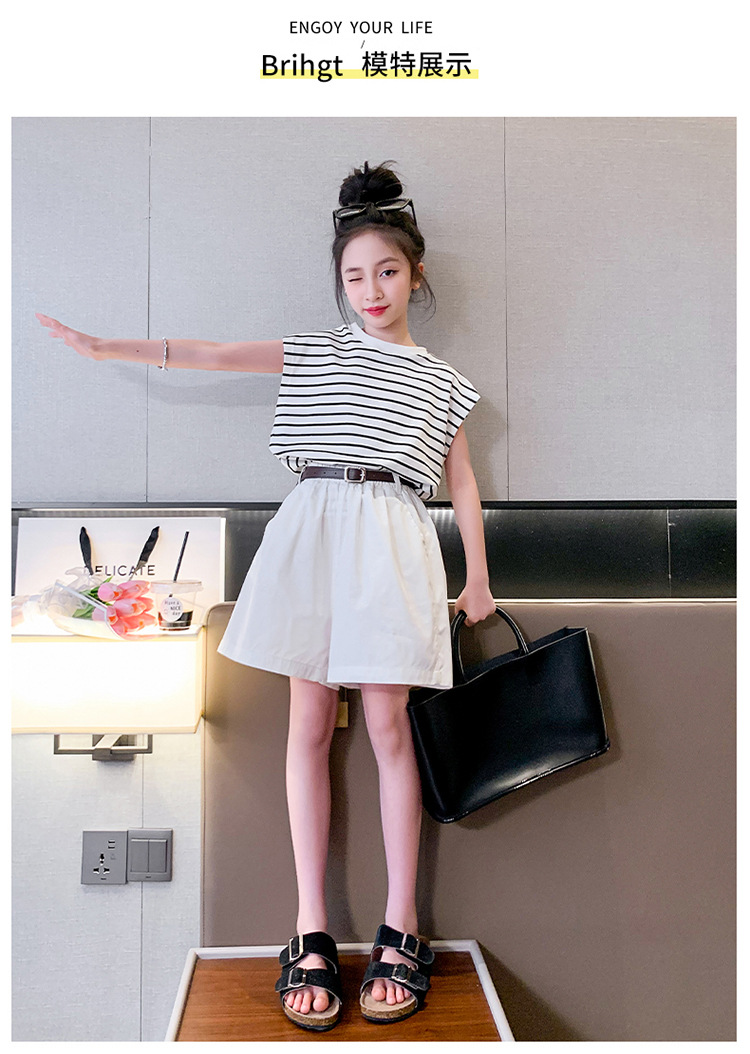 소녀 여름 착용 2024 새로운 서양식 유행 한국 스포츠 큰 어린이 여름 짧은 소매 반바지 세트 아동복