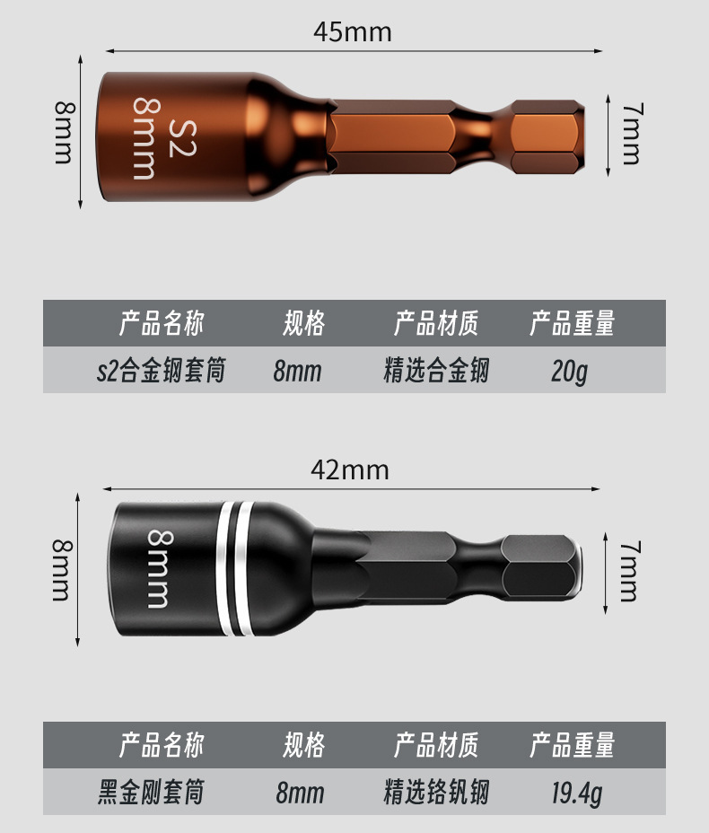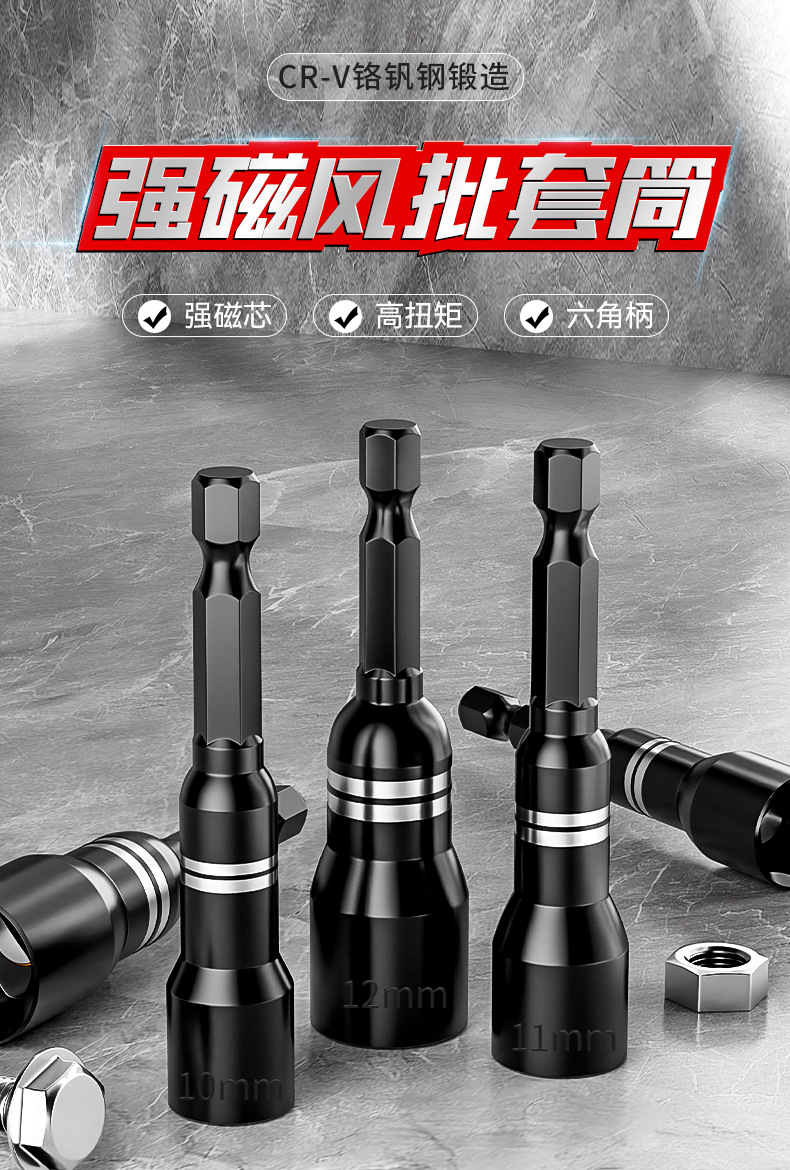 강한 자기 양조 바람 총 육각 소켓 전체 세트 크롬 바나듐 강철 6mm 전기 렌치 육각 소켓
