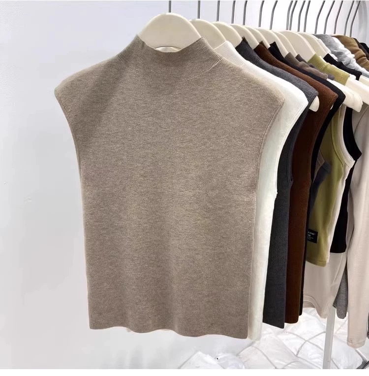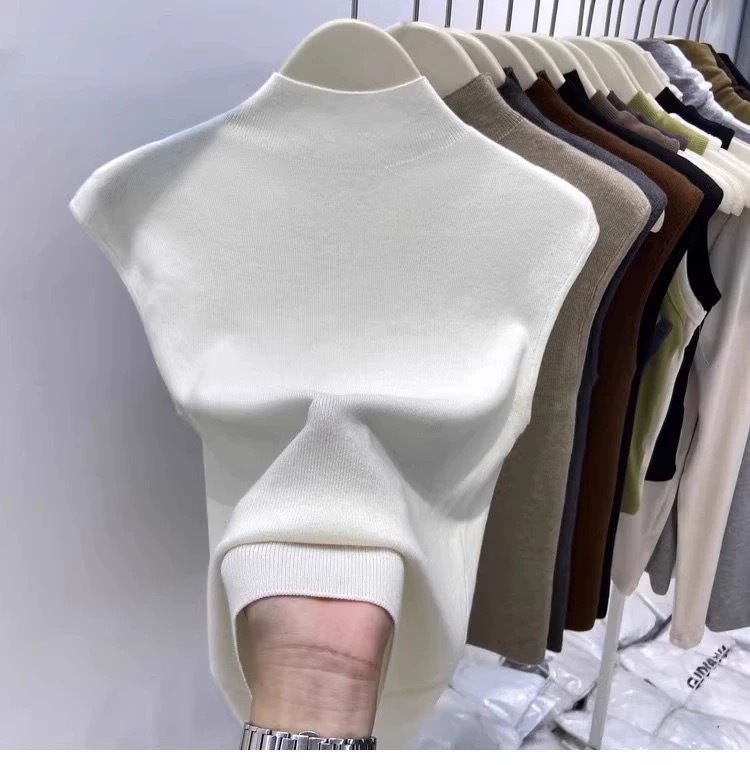 여성용 신상 봄 여름 하프 터틀넥 니트 민소매 조끼, 다용도 레이어드 스타일, 슬림핏 여성용 베이스 레이어 탑스토어 가기