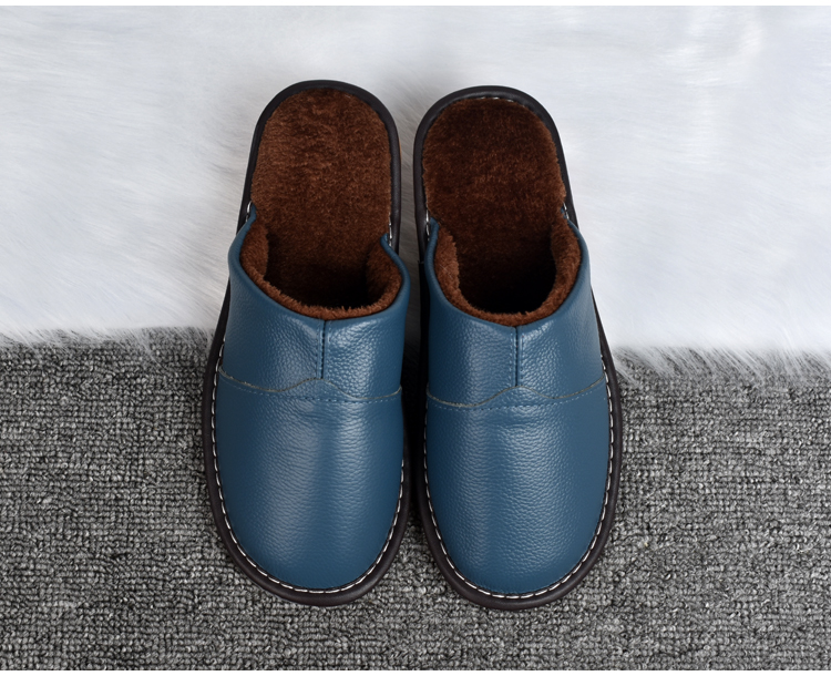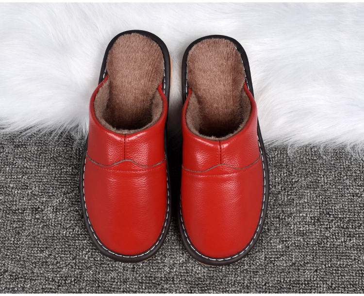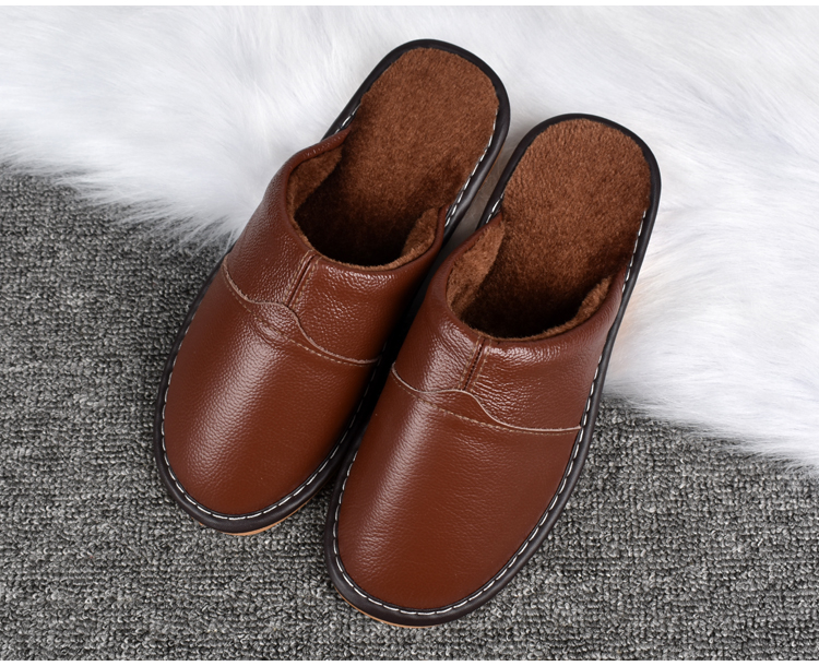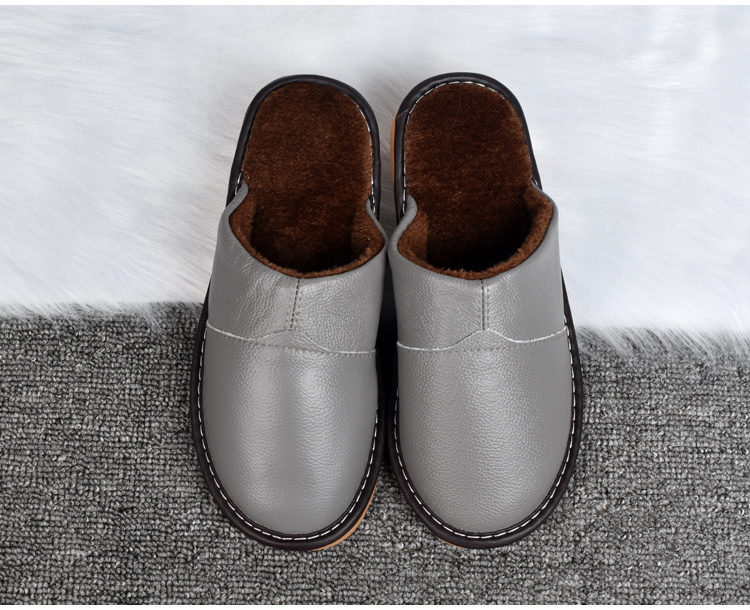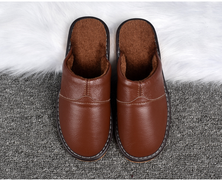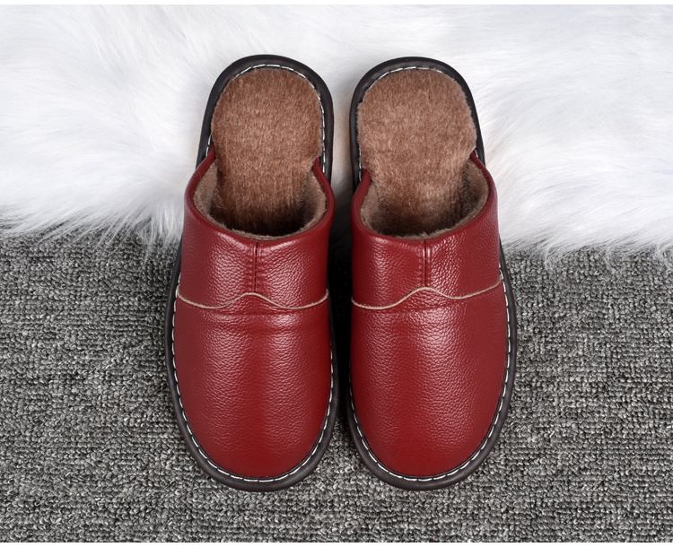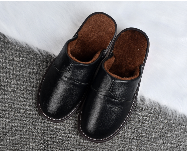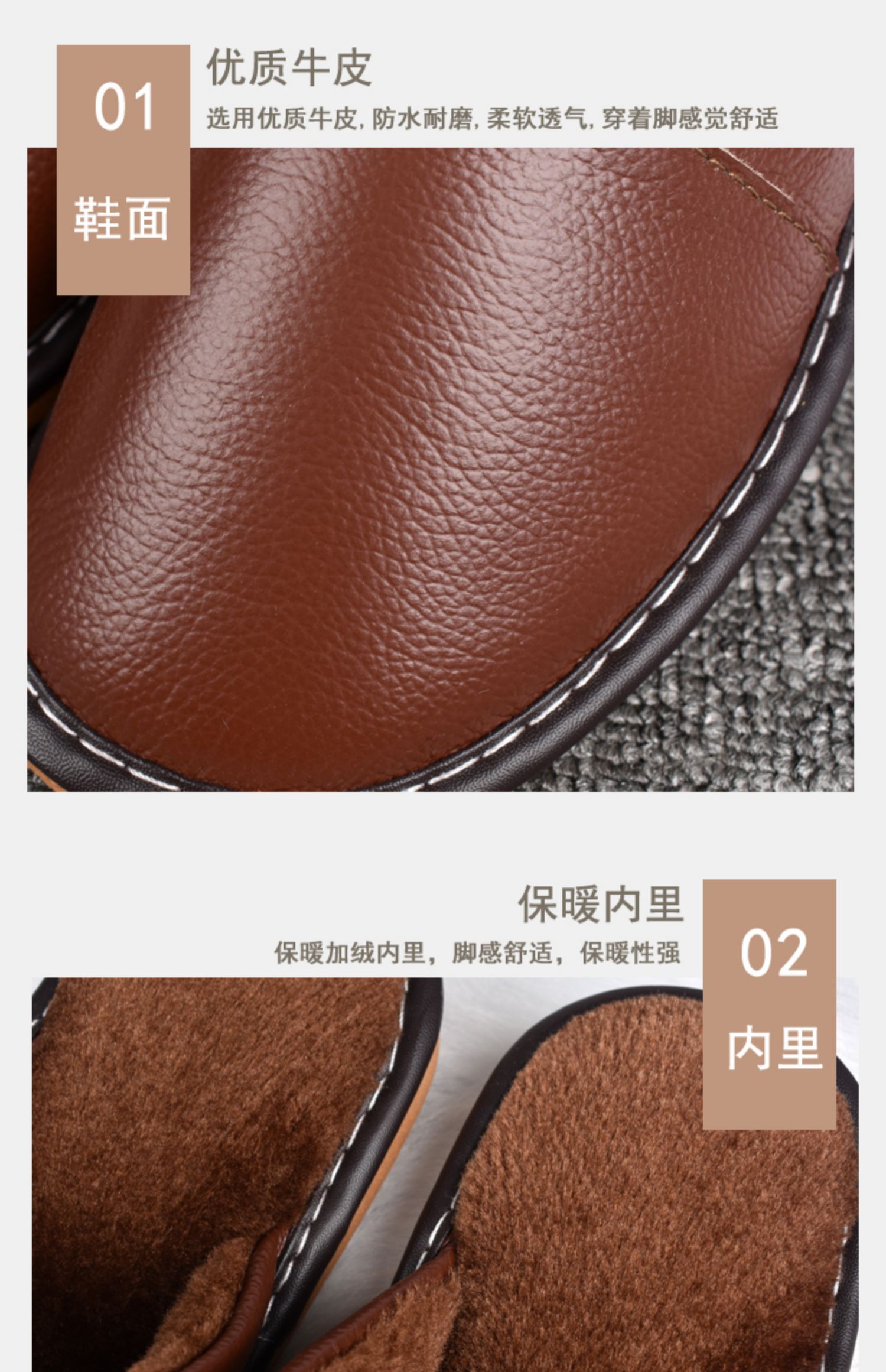 [소 가죽의 첫 번째 레이어] 남성과 여성을위한 가죽 슬리퍼 홈 겨울 두꺼운 따뜻한 면화 슬리퍼 실내 미끄럼 방지 가방 Beiqin
