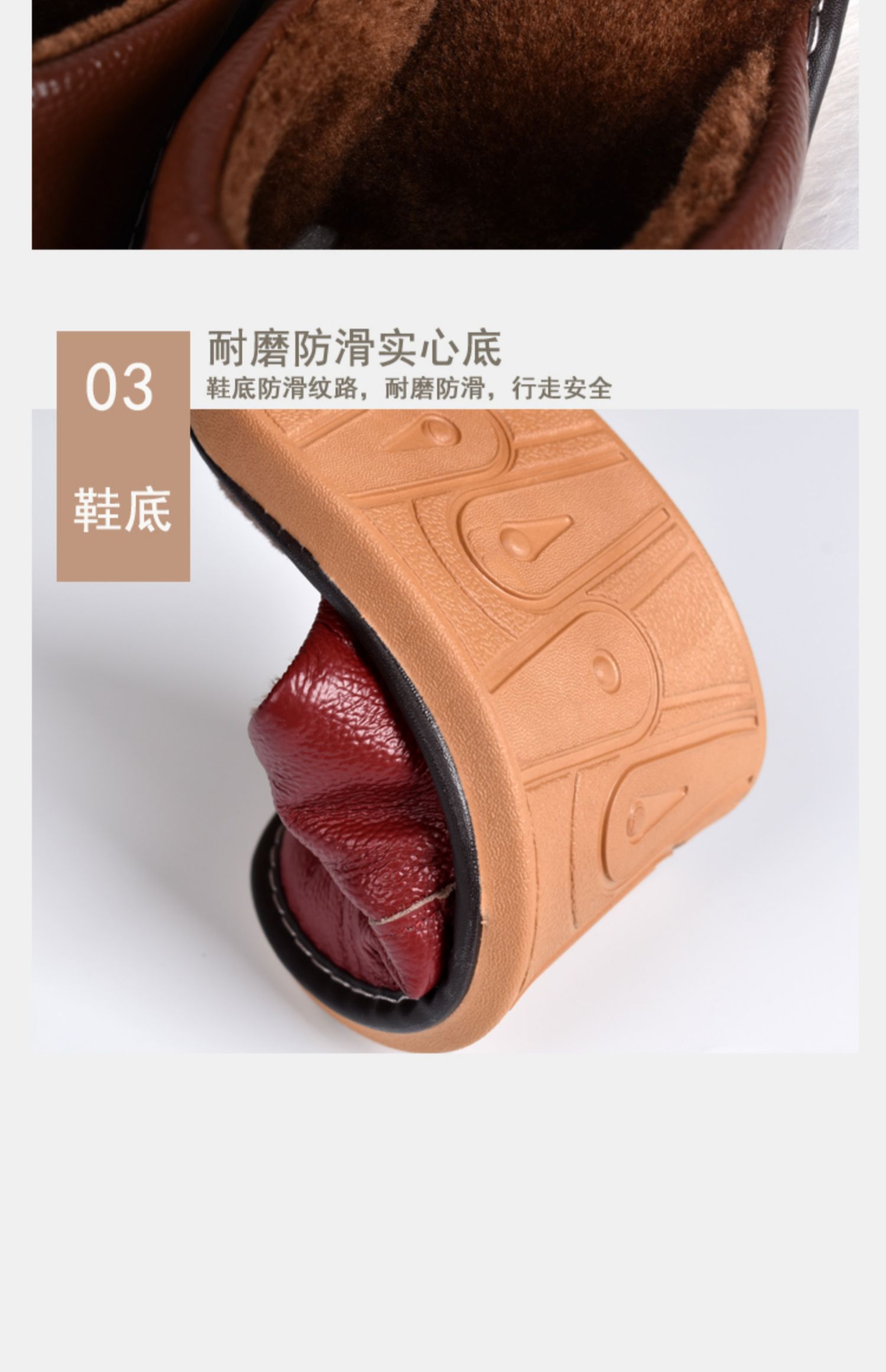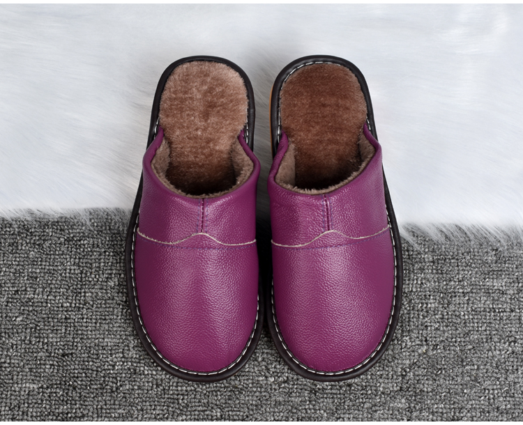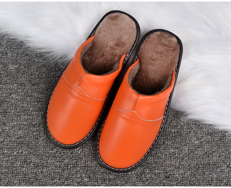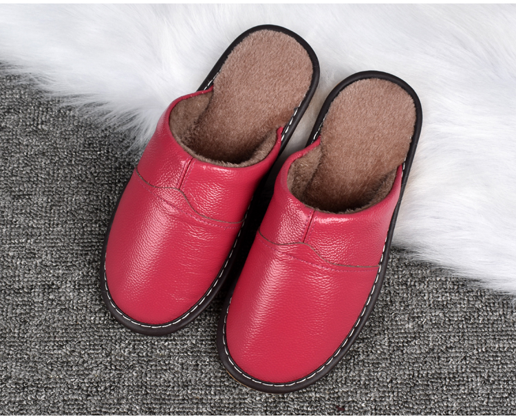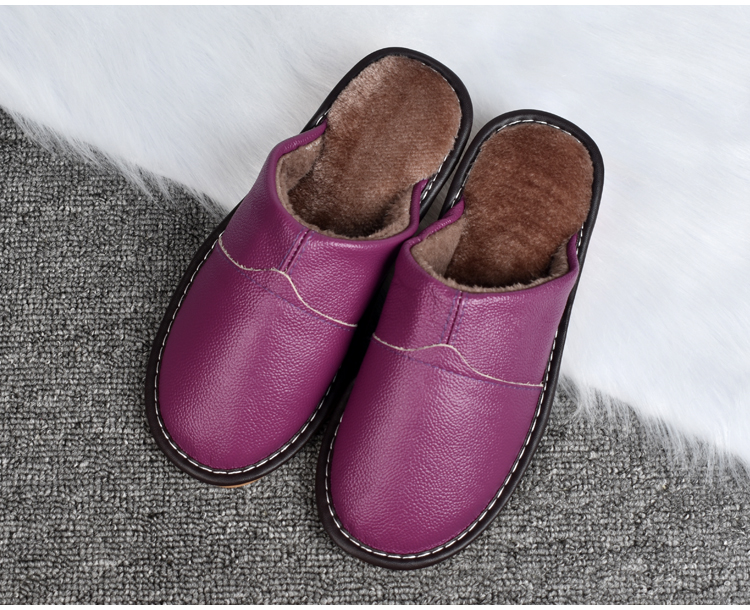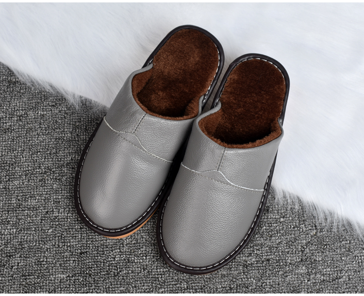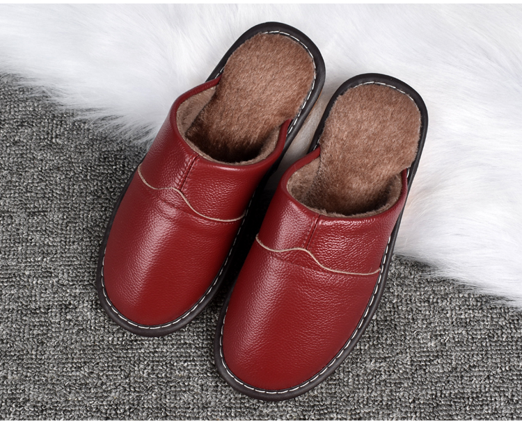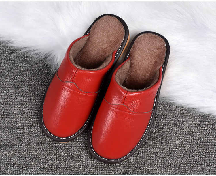[소 가죽의 첫 번째 레이어] 남성과 여성을위한 가죽 슬리퍼 홈 겨울 두꺼운 따뜻한 면화 슬리퍼 실내 미끄럼 방지 가방 Beiqin
