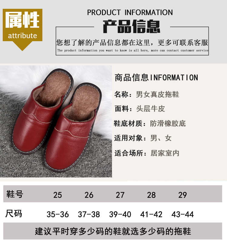 [소 가죽의 첫 번째 레이어] 남성과 여성을위한 가죽 슬리퍼 홈 겨울 두꺼운 따뜻한 면화 슬리퍼 실내 미끄럼 방지 가방 Beiqin스토어 가기