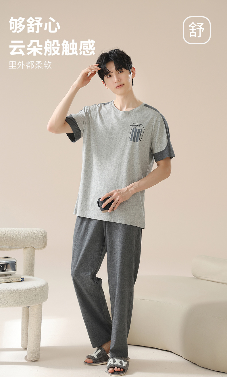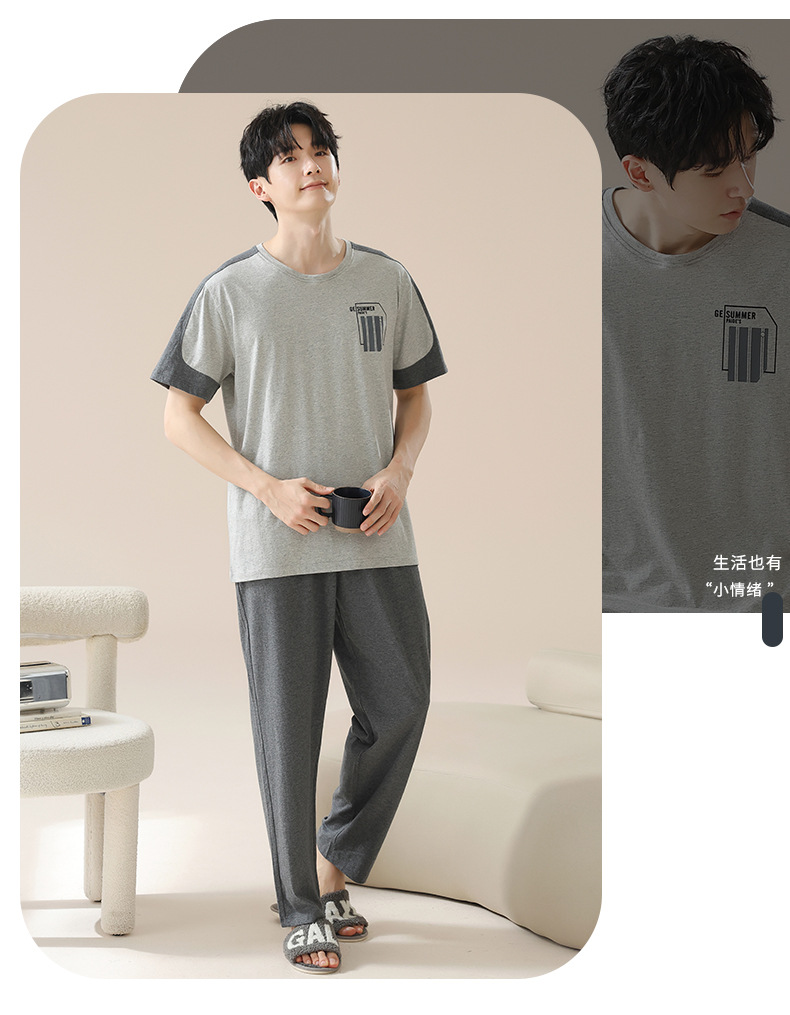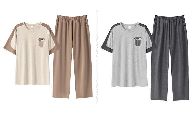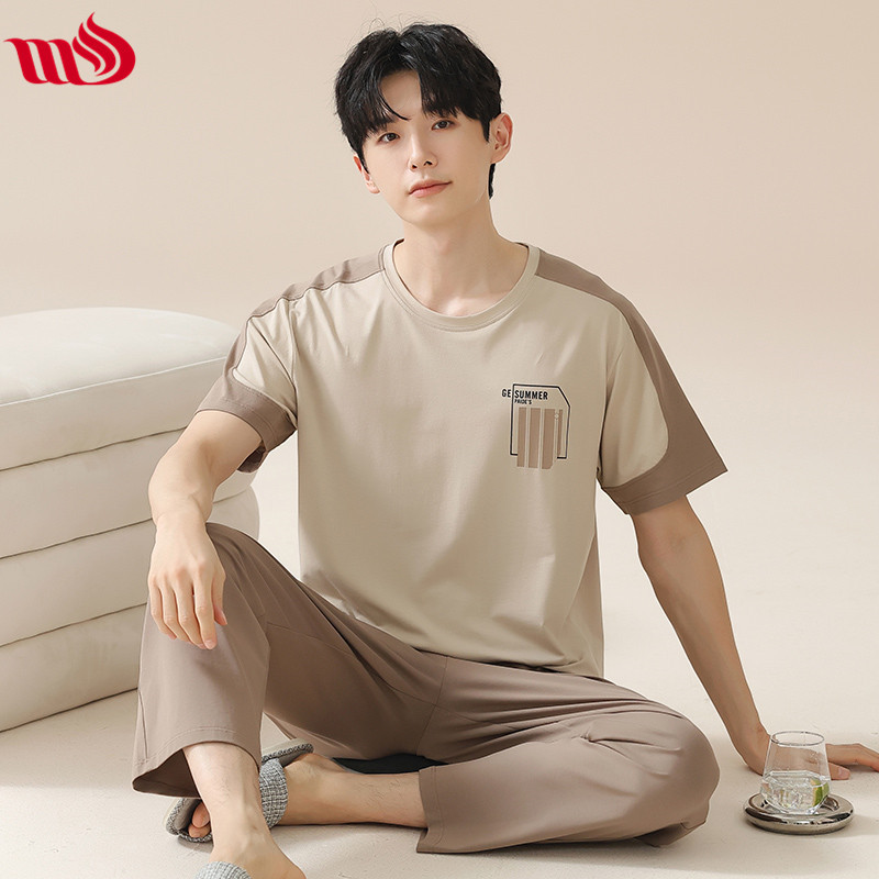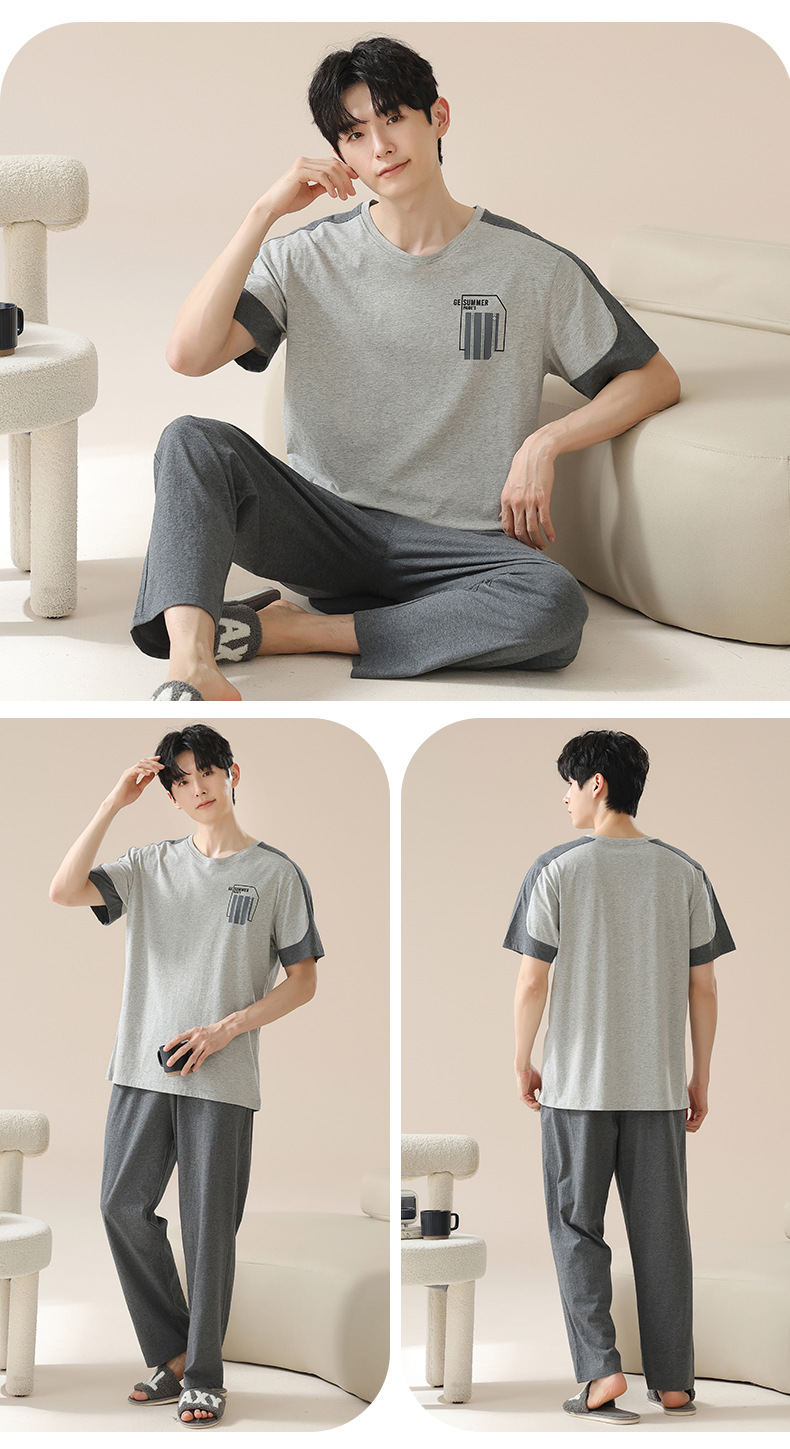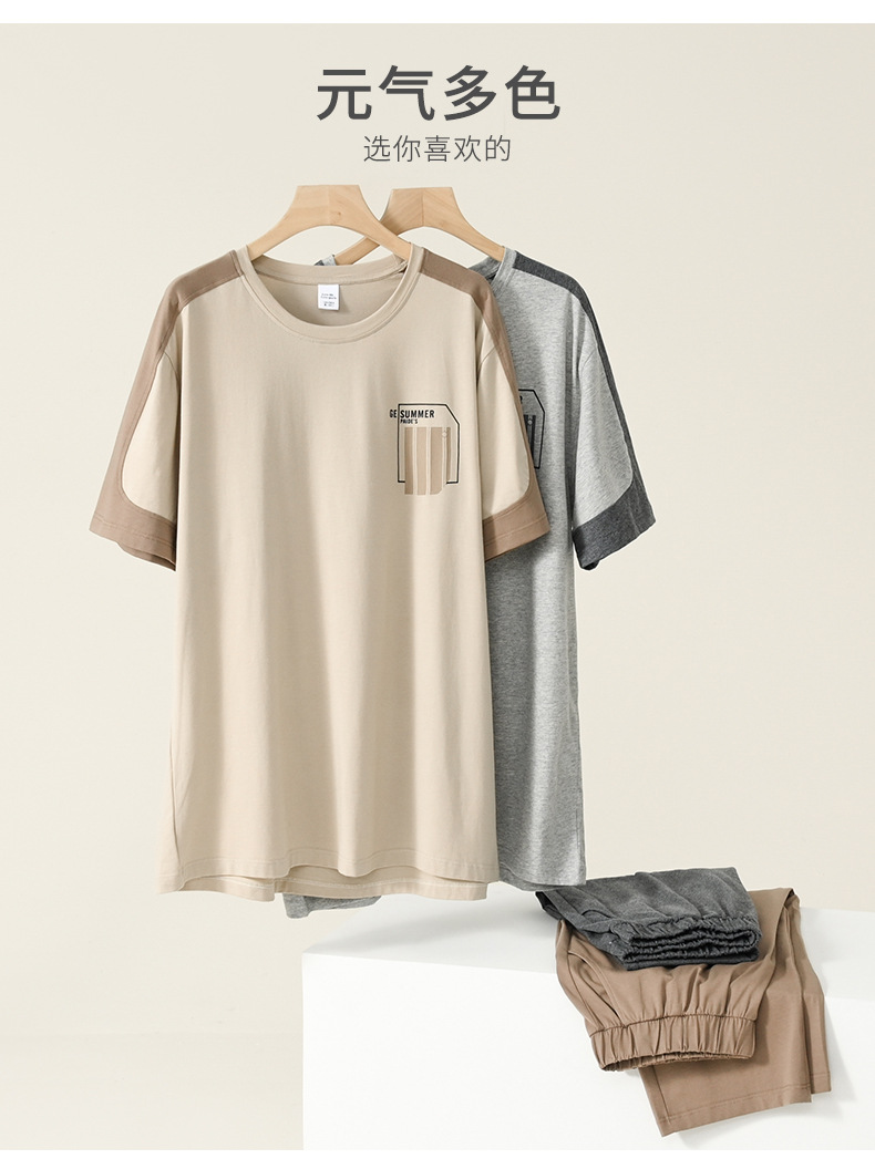 Longshijia 남성 잠옷 코튼 여름 반팔 바지 컬러 매칭 세트 한국식 코튼 홈웨어 밖에서 입을 수 있습니다.스토어 가기