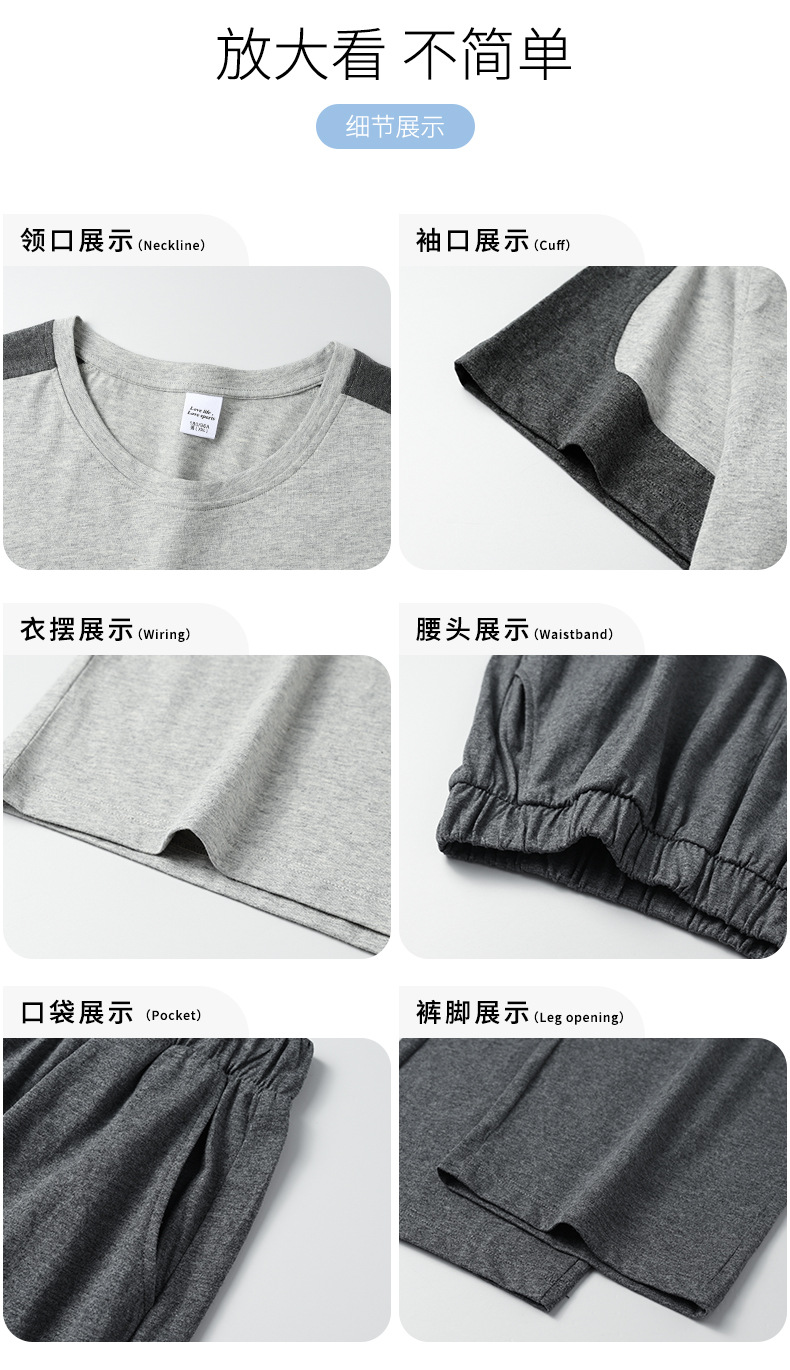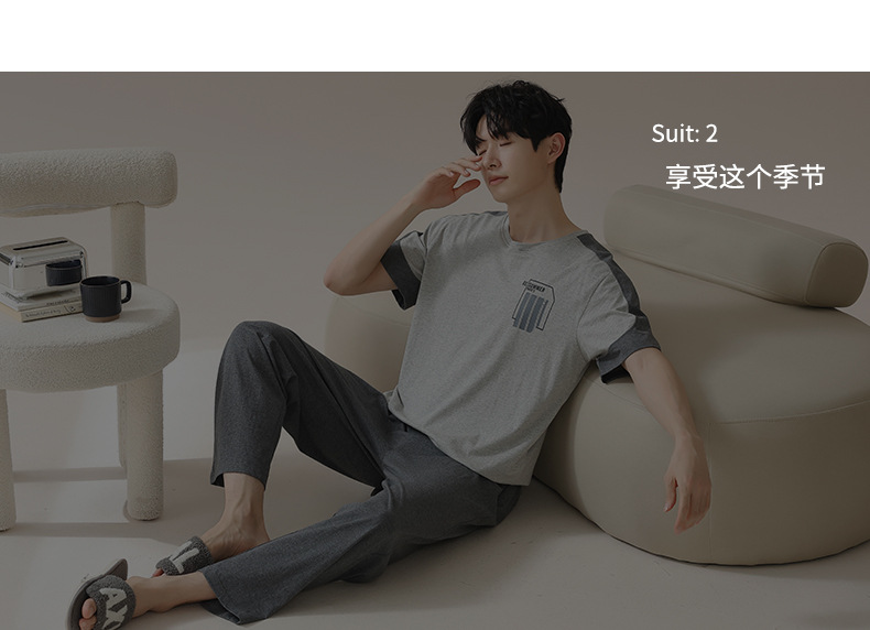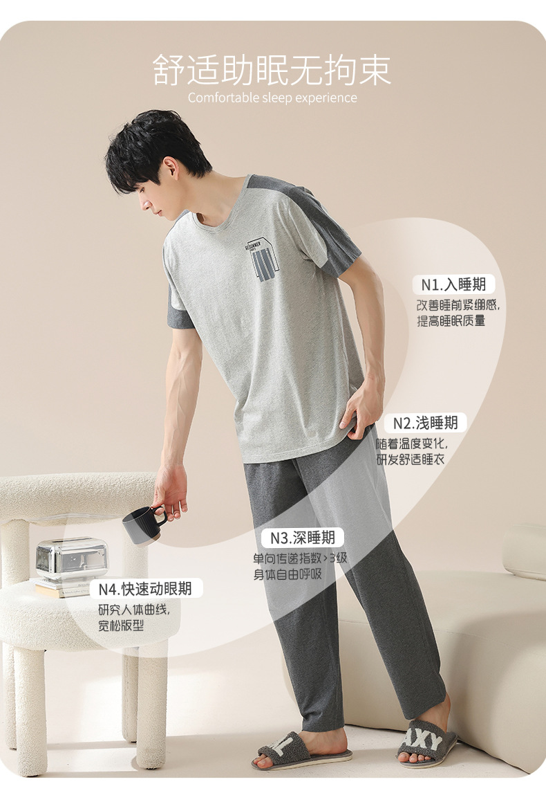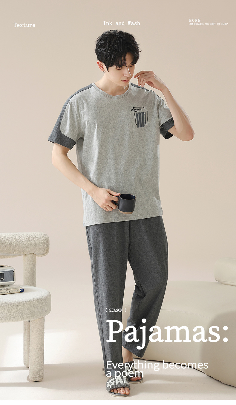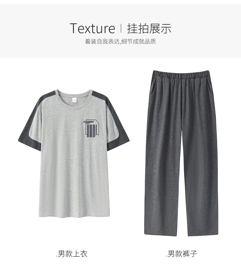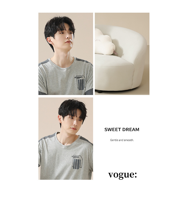 Longshijia 남성 잠옷 코튼 여름 반팔 바지 컬러 매칭 세트 한국식 코튼 홈웨어 밖에서 입을 수 있습니다.스토어 가기