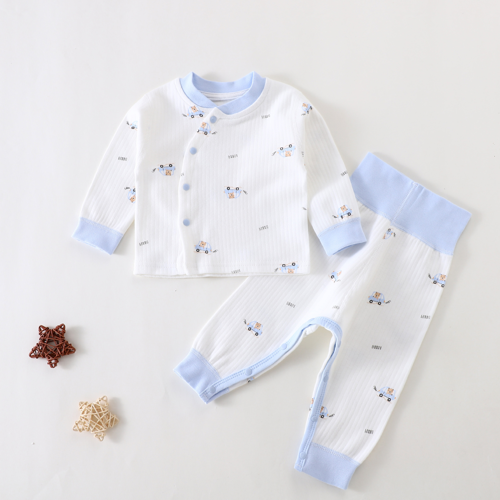 아기의 면화 가을 옷 높은 허리 배꼽 보호 세트 봄과 가을 분할 옷 잠옷 아기 뼈없는 어린이 속옷 긴 바지