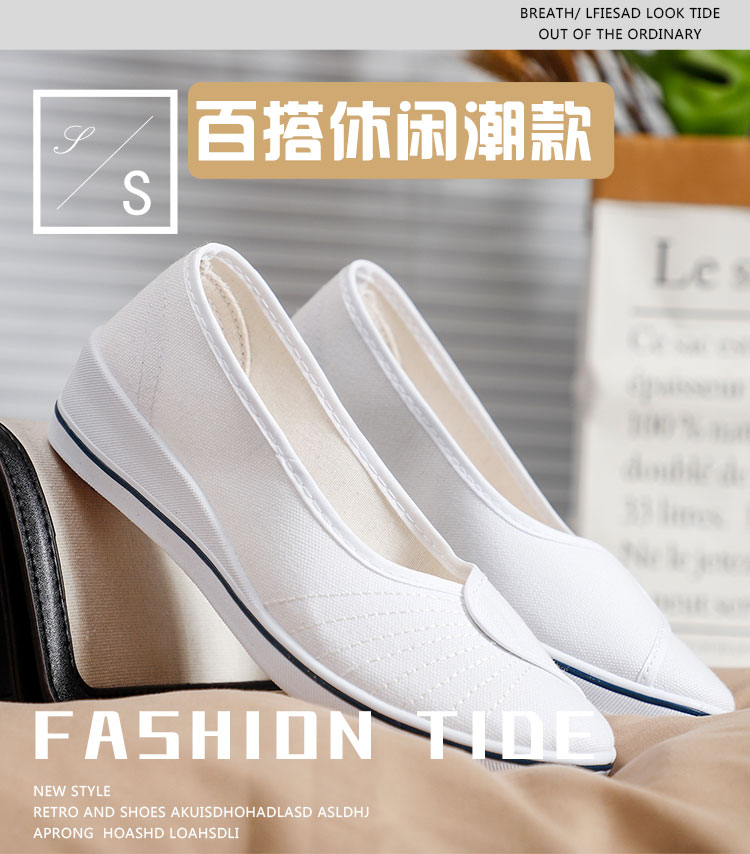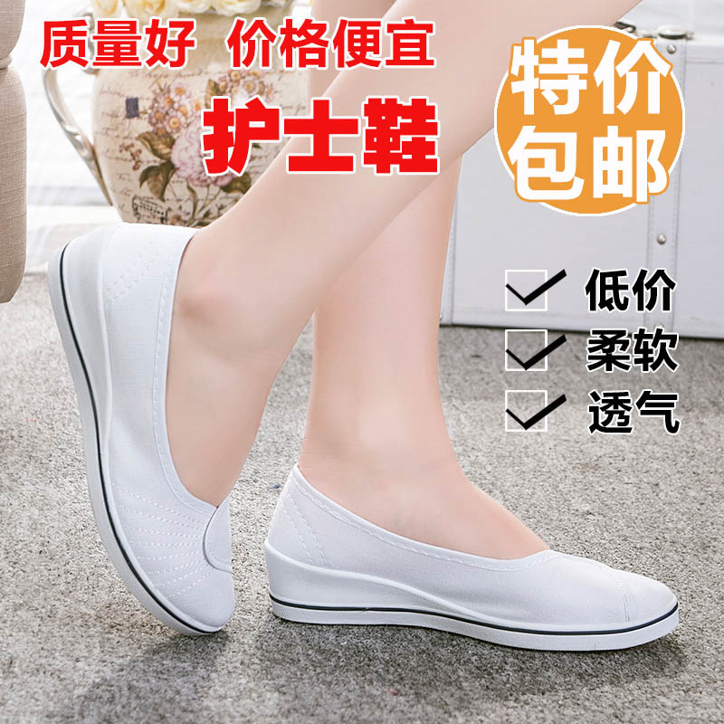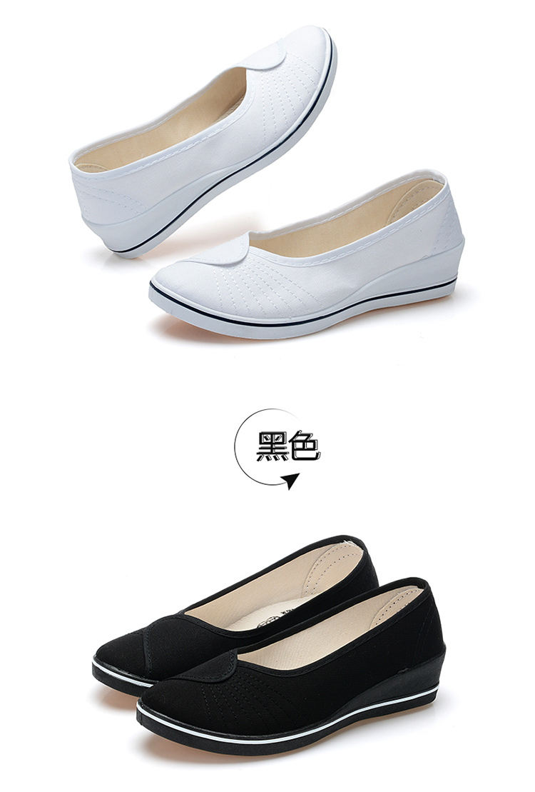 간호사 신발 여성 화이트 웨지 힐 부드러운 바닥 쇠고기 단독 병원 미용 신발 블랙 플랫 캔버스 탈취제 통기성 작은 Bei Qin
