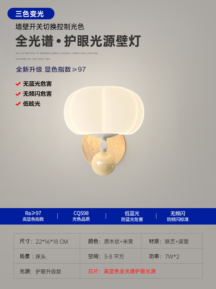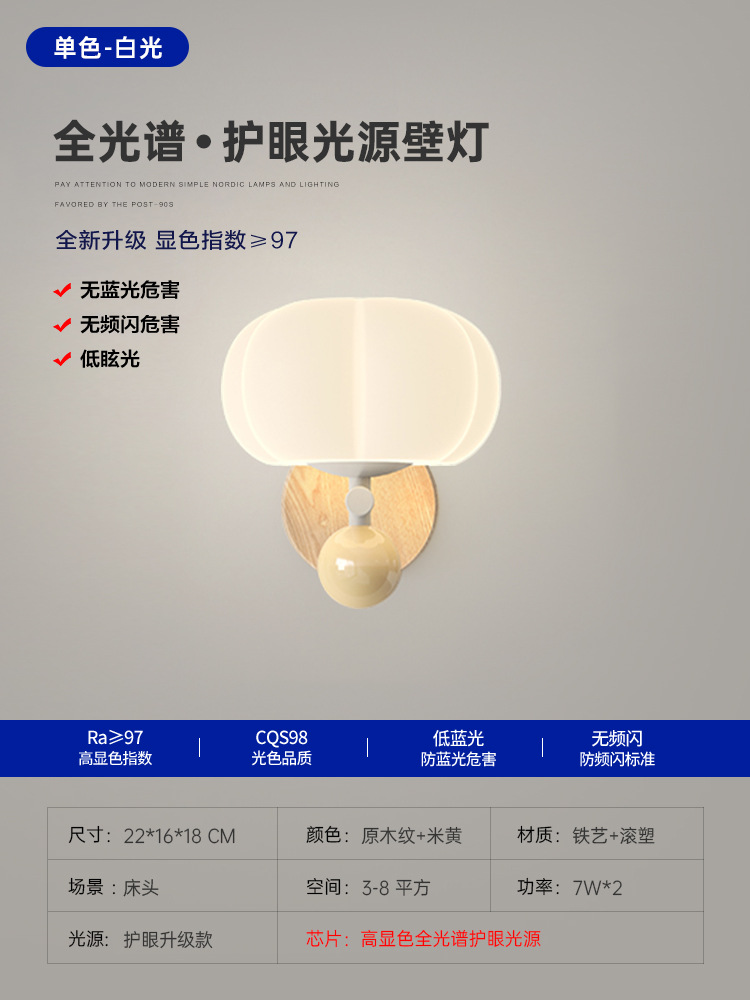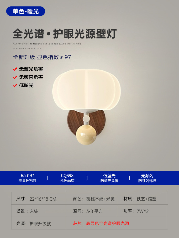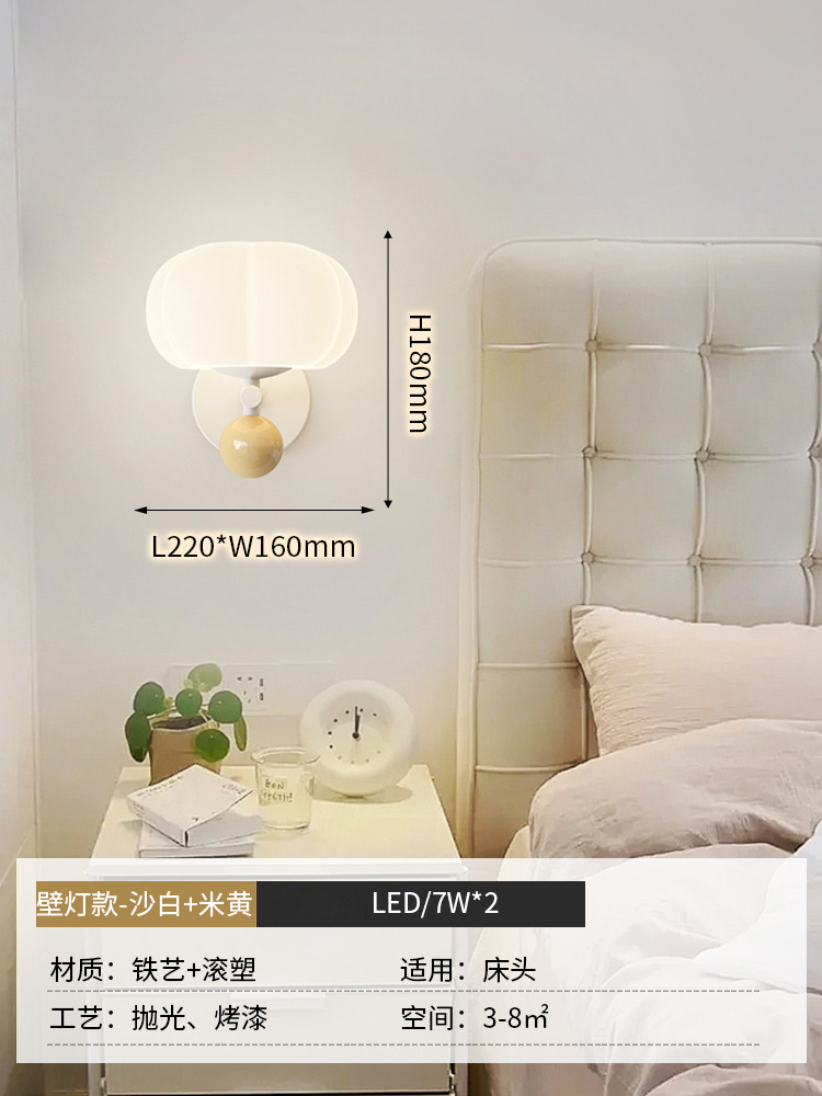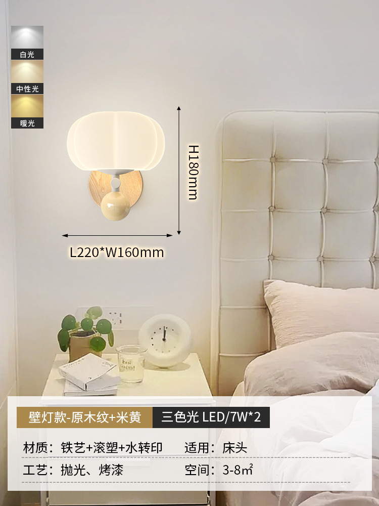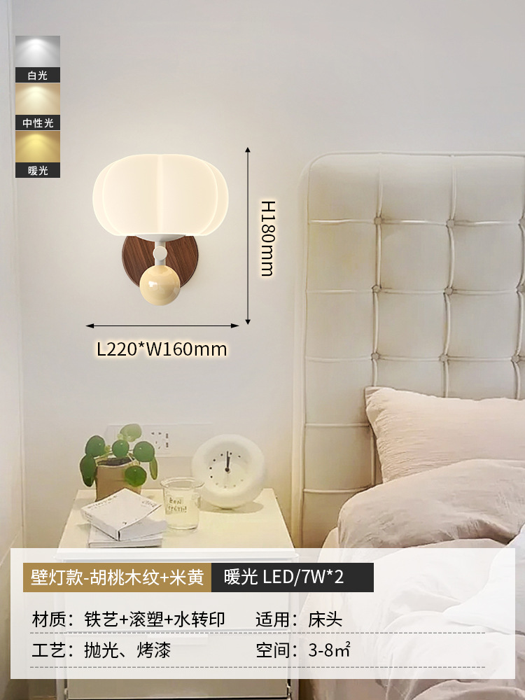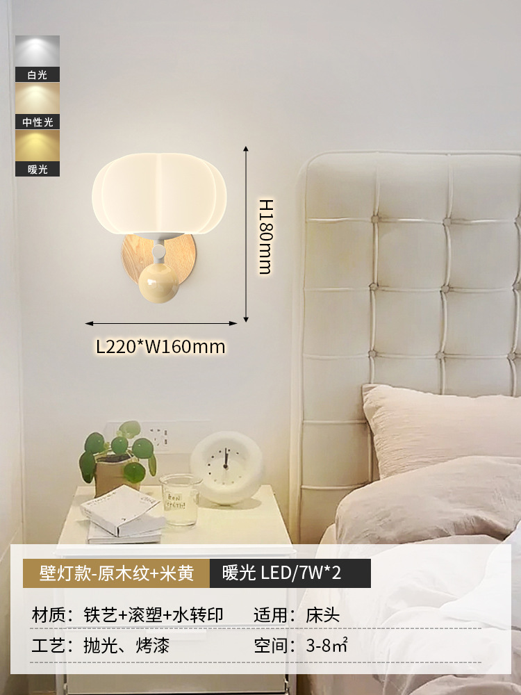 침실 침대 옆 벽 램프 샹들리에 북유럽 나뭇결 크림 스타일 거실 호박 장식 램프 간단한 고급 통로 램프스토어 가기