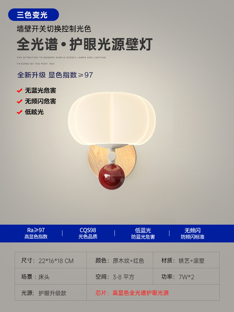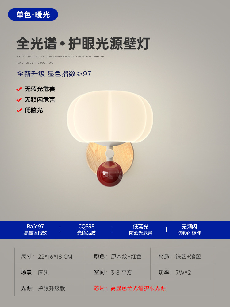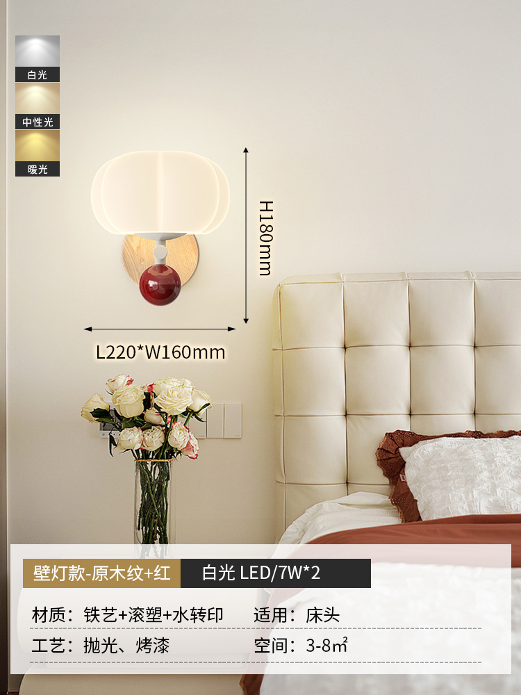 • 벽 램프-원래 나뭇결 + 빨강 [22CM] 세 가지 색상