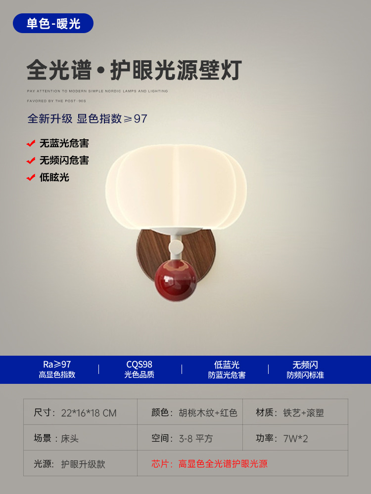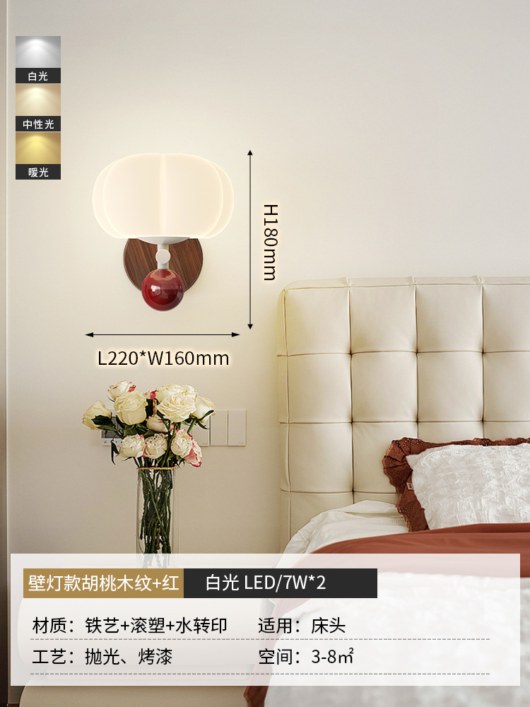 • 벽 램프-호두 나뭇결 + 빨강 [22CM] 세 가지 색상