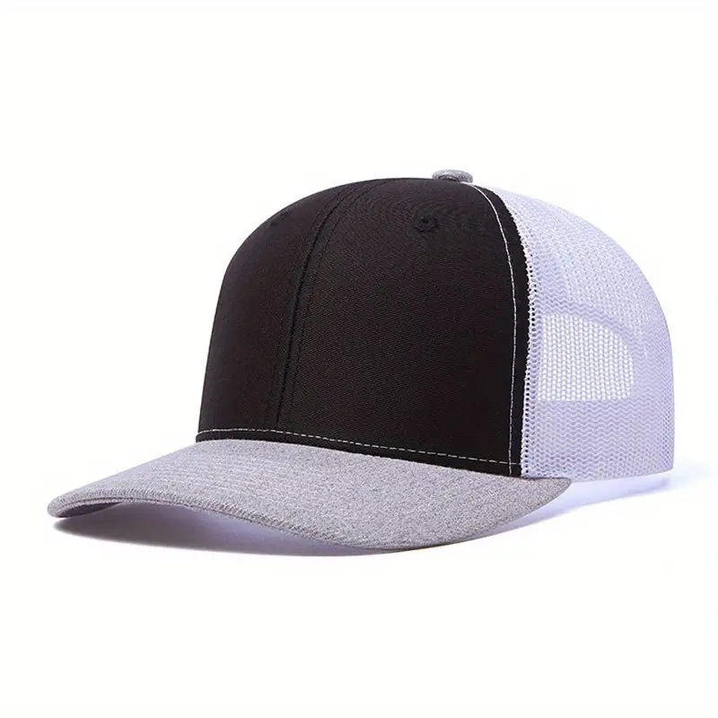 • 야구 모자 트럭 운전사 메쉬 모자-검은 색 모자 회색 테두리 흰색 메쉬