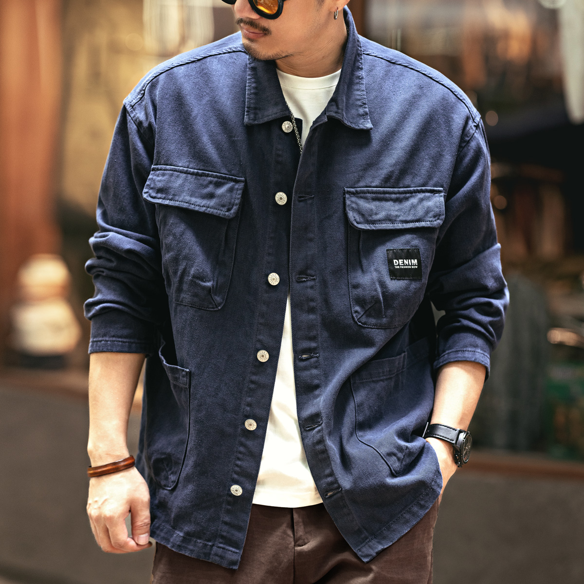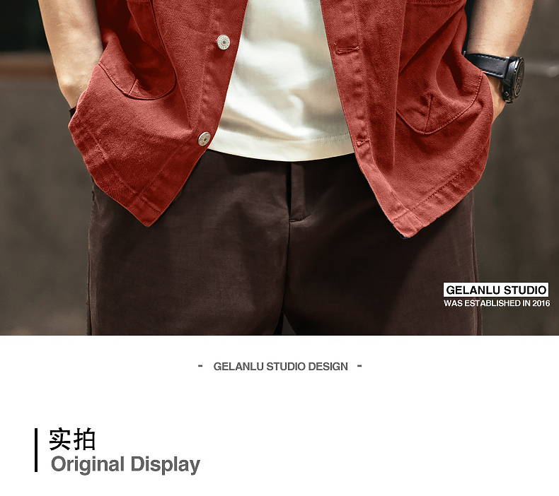 Ge Lan Lu 미국 스타일의 헤비 레트로 데님 코트 남성 봄과 가을 느슨한 캐주얼 패션 브랜드 사냥 도구 재킷 남성스토어 가기
