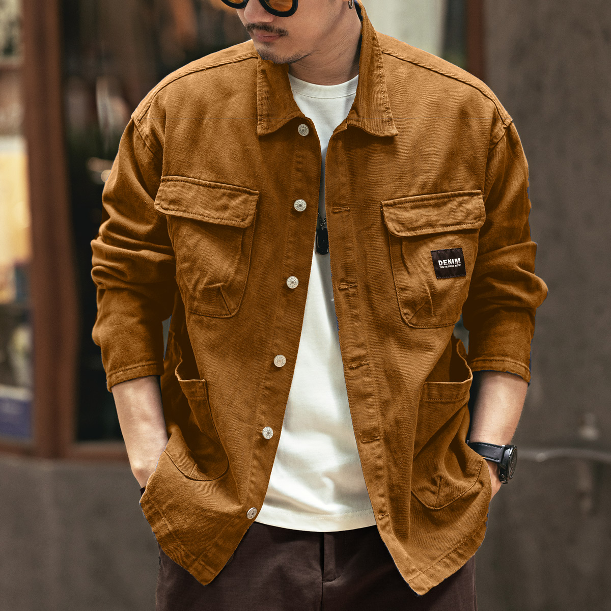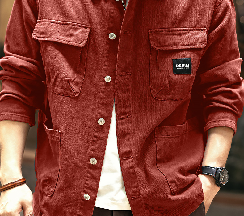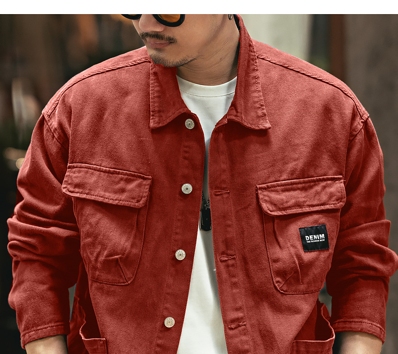 Ge Lan Lu 미국 스타일의 헤비 레트로 데님 코트 남성 봄과 가을 느슨한 캐주얼 패션 브랜드 사냥 도구 재킷 남성