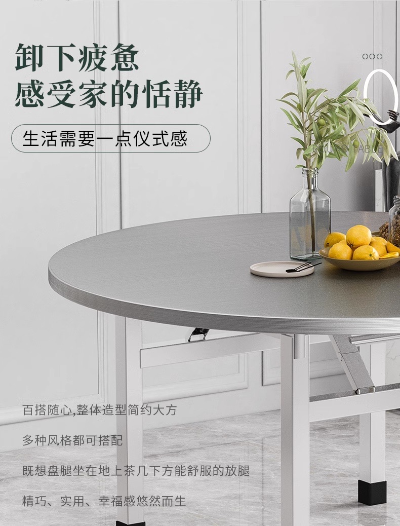 304 스테인레스 스틸 접이식 테이블 라운드 테이블 턴테이블 호텔 다파이 스톨 러닝 워터 테이블 스톨 홈 다이닝 라운드 베이킨스토어 가기