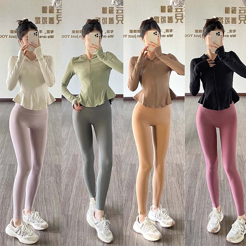 봄과 가을 전문 필라테스 스포츠 빠른 건조 슬림 탑 디자인 지퍼 후드 긴 소매 요가 옷을 실행 여성을위한스토어 가기