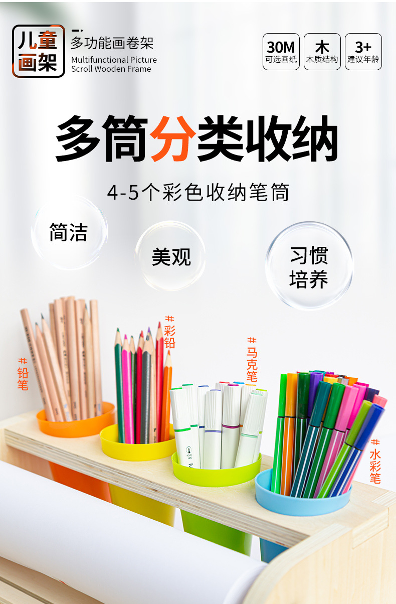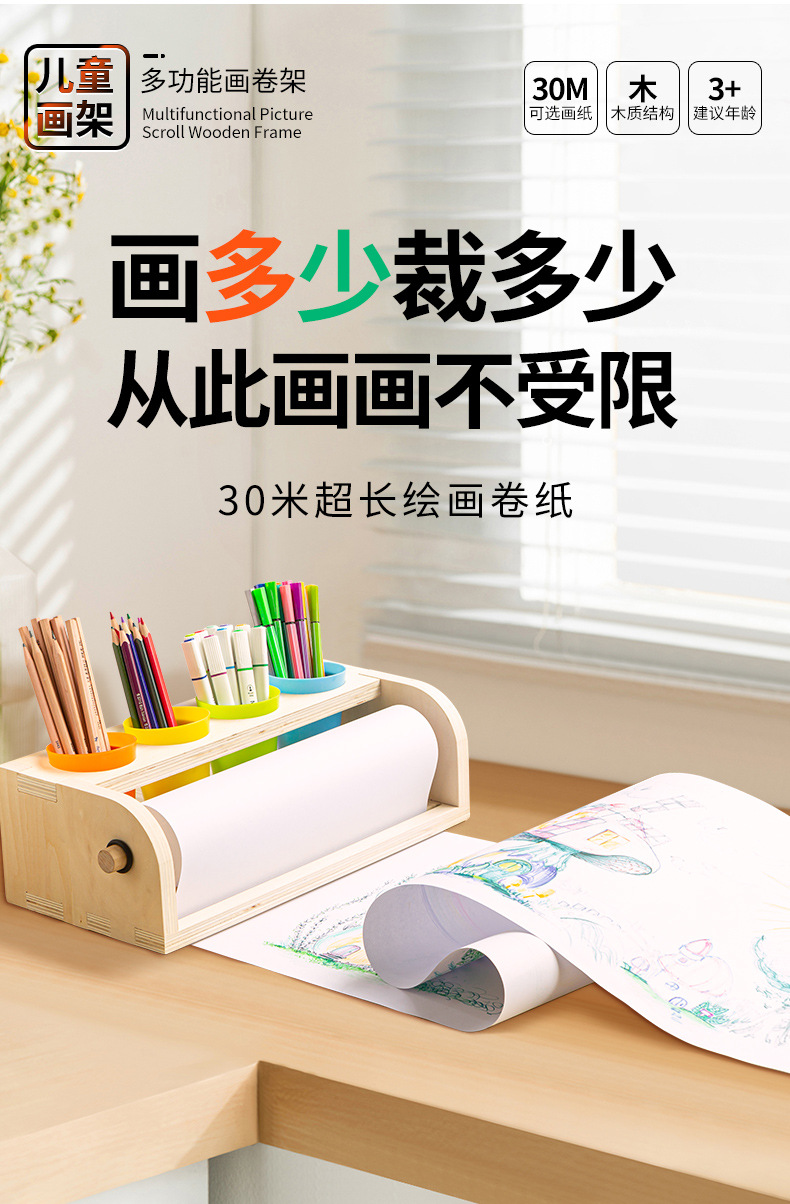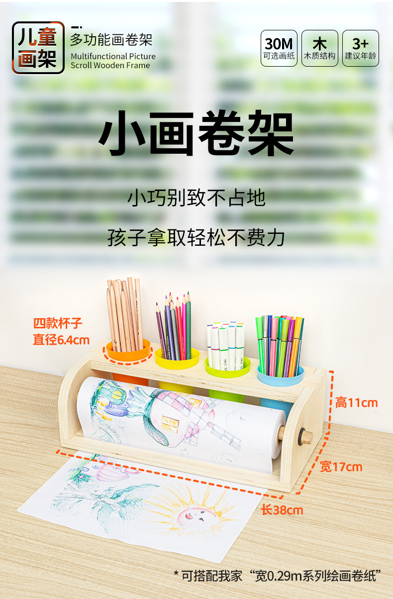 어린이 롤 종이 이젤 데스크탑 데스크탑 나무 작은 이젤 펜 홀더 아기 낙서 그림 나무 롤 종이 홀더를 잡을 수 있습니다