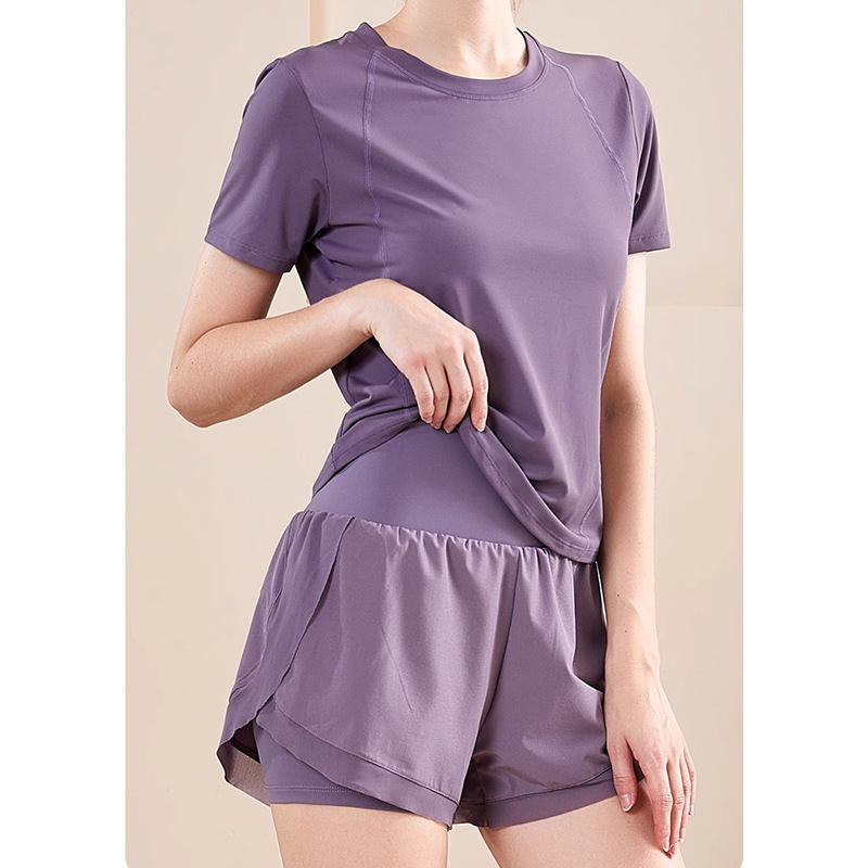 가짜 투피스 하이 허리 스포츠 반바지 여성의 노출 방지 빠른 건조 느슨한 통기성 전문 러닝 요가 피트니스 반바지 여름