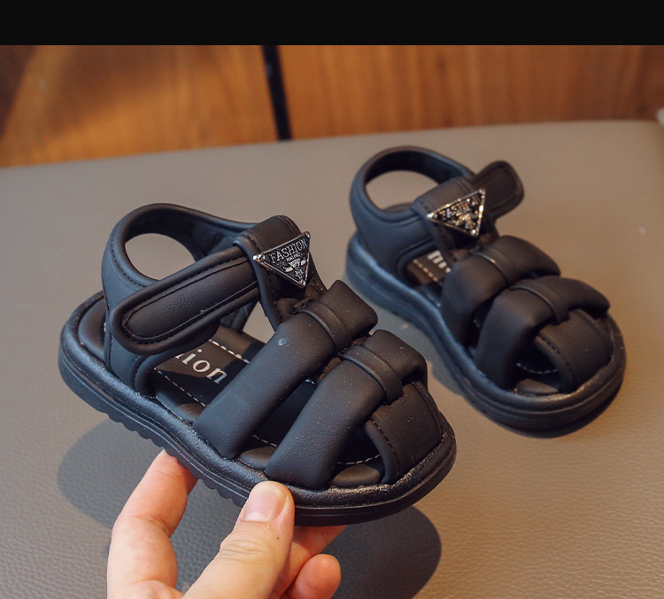 어린이 샌들 미끄럼 방지 여름 3-6 세 소녀 소년 단색 벨크로 신발 부드러운 바닥 올 매치 단색 토끼스토어 가기