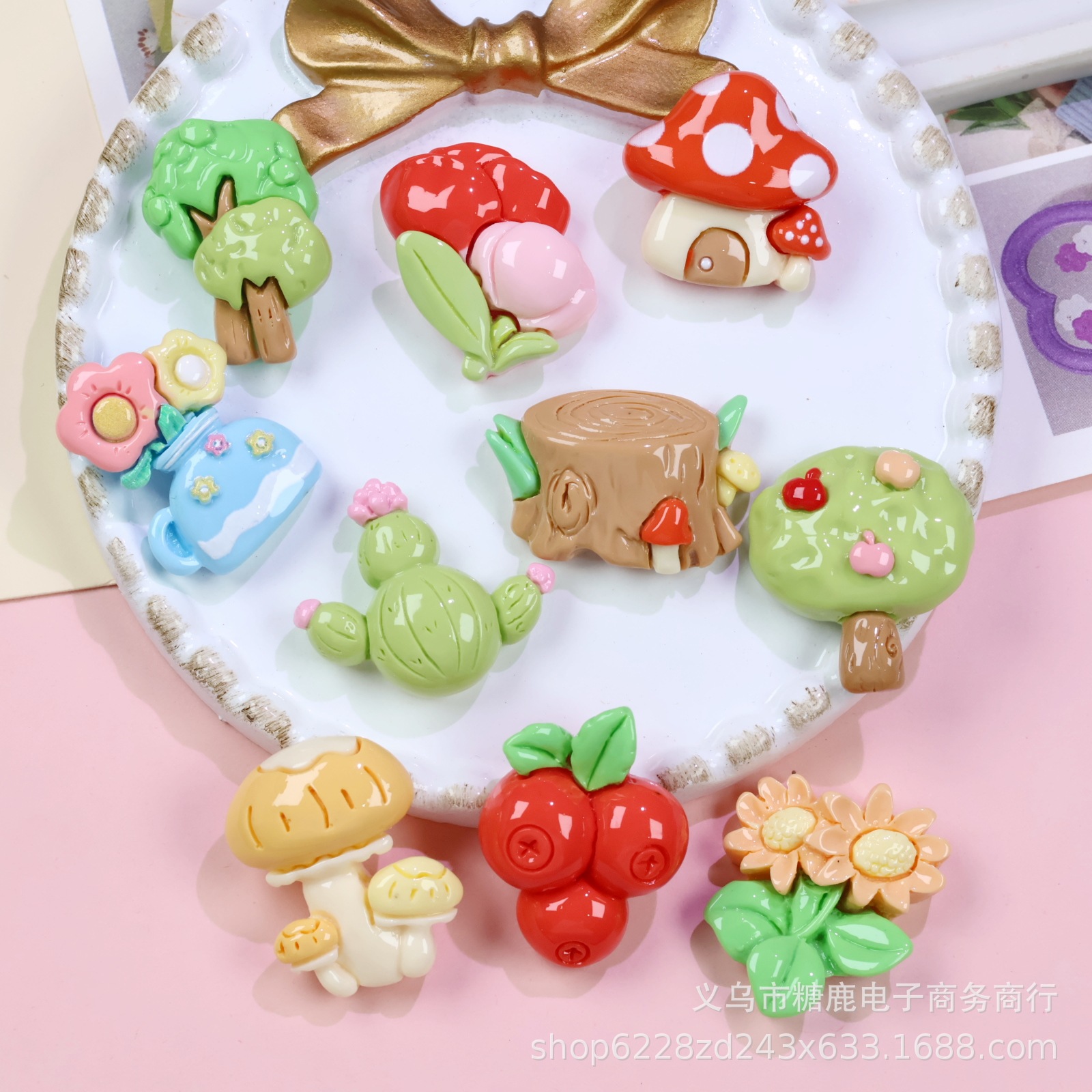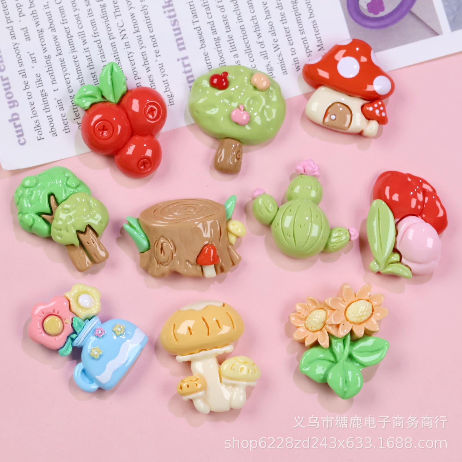 작은 카드 숲 장면 나무 더미 과일 나무 버섯 시리즈 수지 액세서리 크림 접착제 diy 전화 케이스 헤어 액세서리 소재