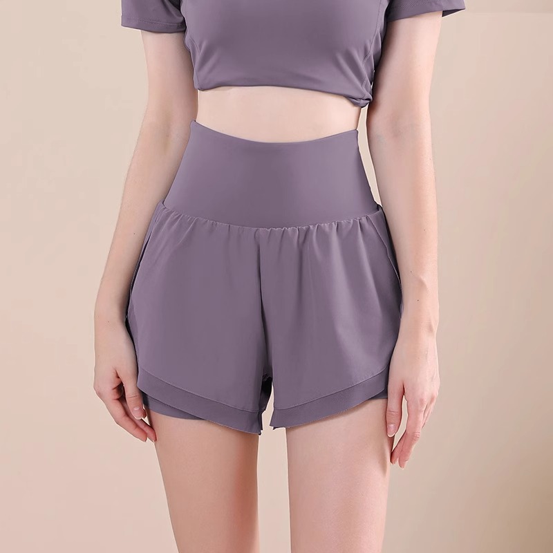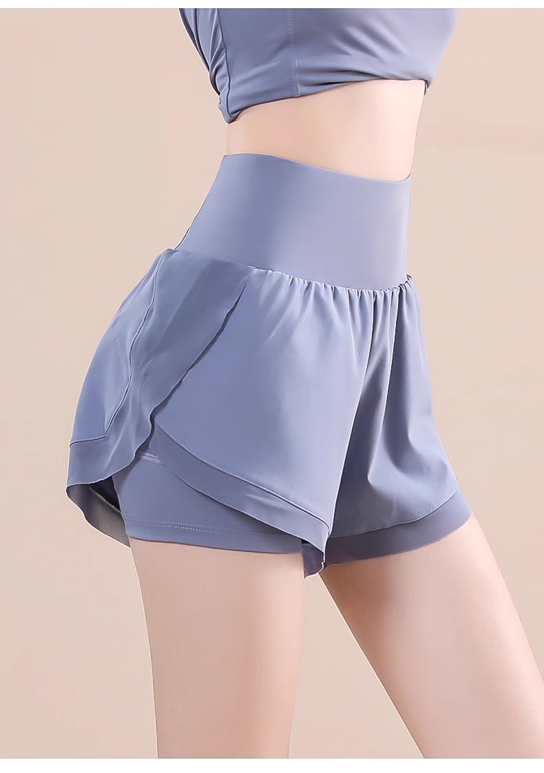 새로운 높은 허리 가짜 투피스 스포츠 반바지 여성의 노출 방지 느슨한 러닝 피트니스 반바지 겉옷 빠른 건조 요가 바지