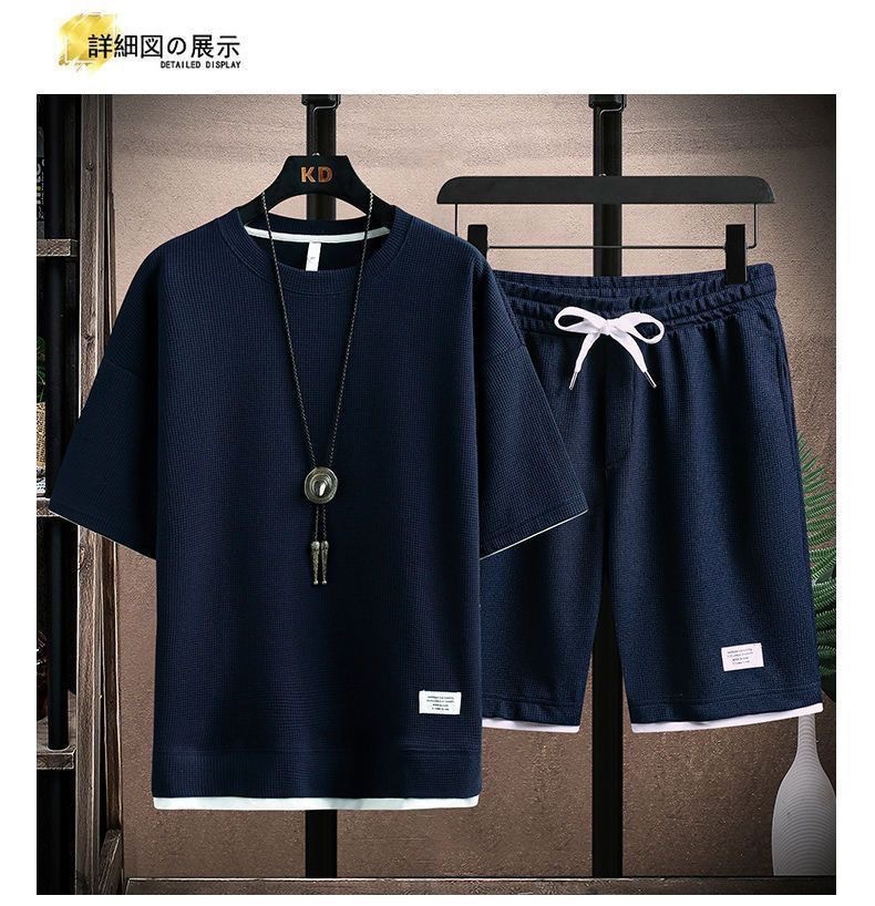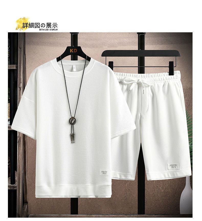 공장 도매 와플 반바지 세트 남성 여름 반팔 남성 세트 패션 브랜드 캐주얼 스포츠웨어스토어 가기