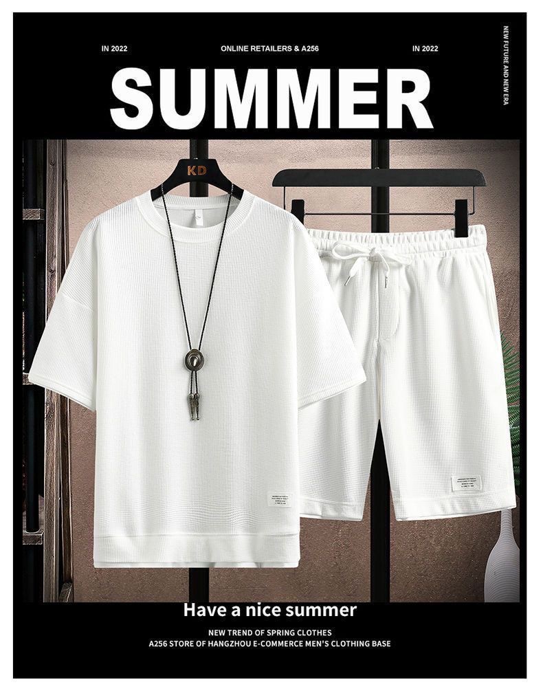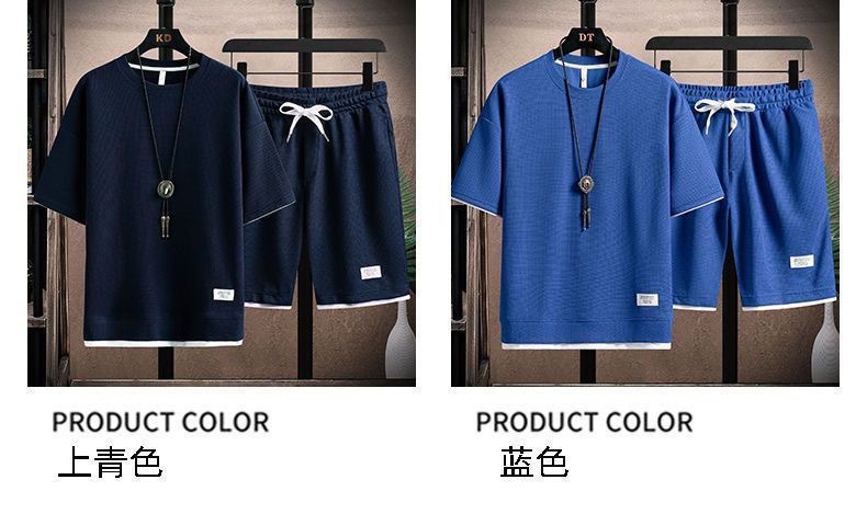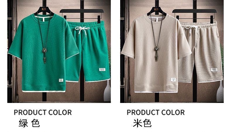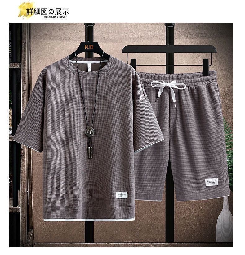 공장 도매 와플 반바지 세트 남성 여름 반팔 남성 세트 패션 브랜드 캐주얼 스포츠웨어
