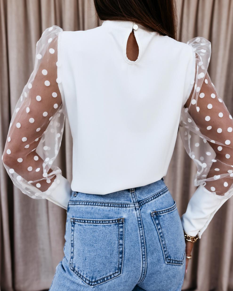 유럽과 미국의 Amazon 독립 스테이션 2024 봄 여름 신작 여성 긴팔 탑 메쉬 레이스 스플 라이스 쉬폰 셔츠