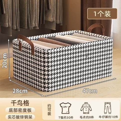 Houndstooth 바지 저장 상자 직물 저장 상자 옷 강철 프레임 저장 상자 접이식 저장 바구니 저장 상자스토어 가기