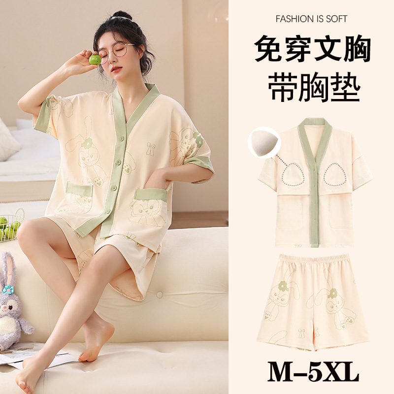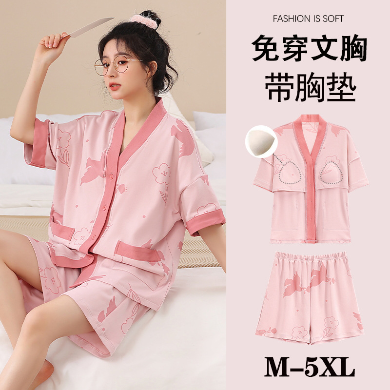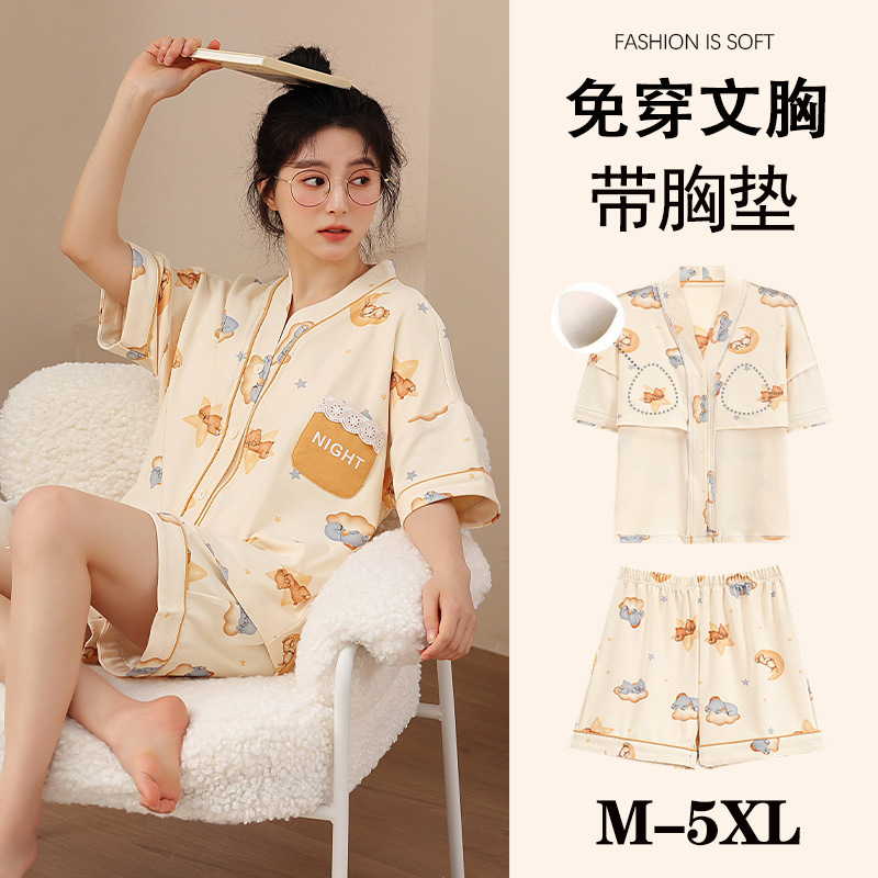 뚱뚱한 mm200 kg 잠옷 여성 여름 반팔 반바지면 가슴 패드가 매우 큰 크기의 느슨한 220kg 5XL 얇은스토어 가기