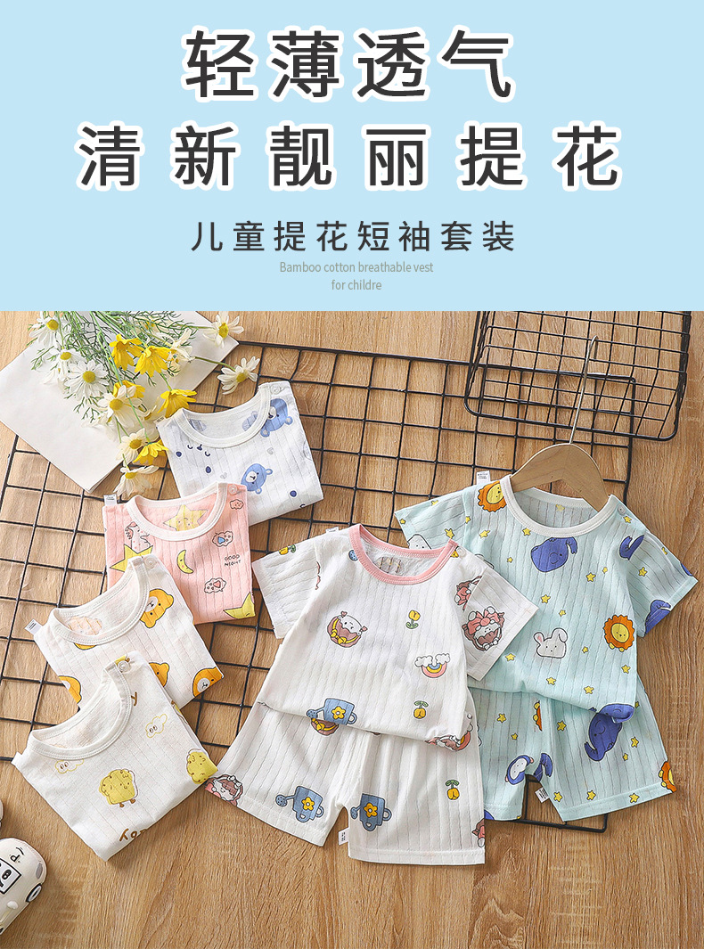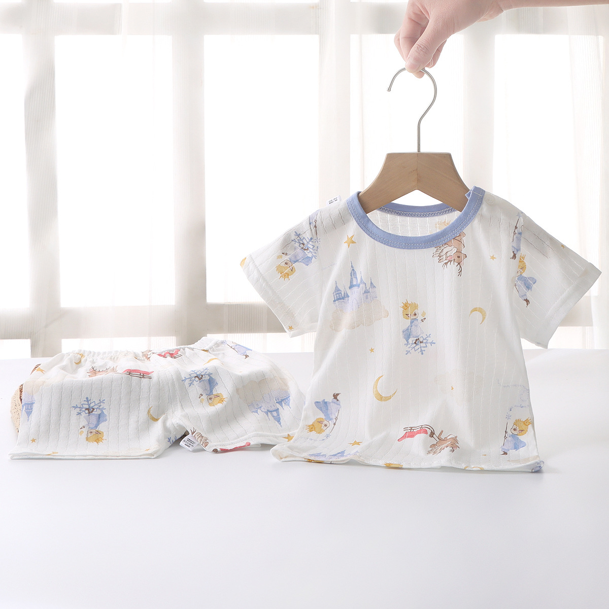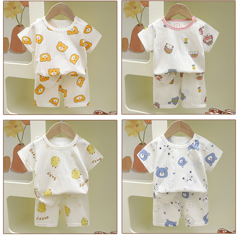 여름 어린이 잠옷 면화 아기 반팔 반바지 얇은 소년 소녀 집 잠옷 아기 세트