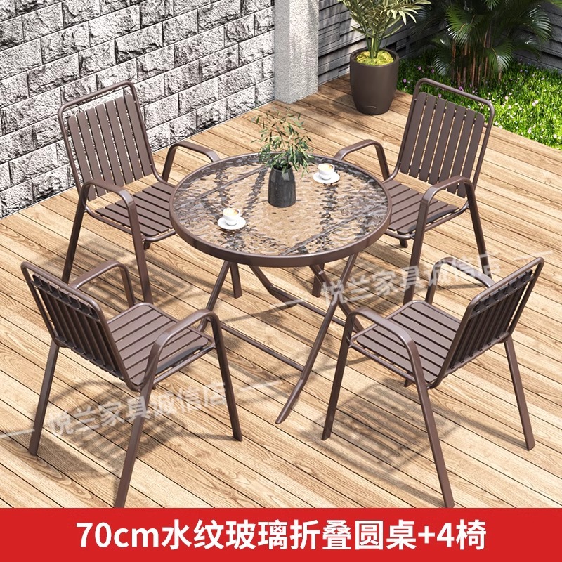 • 70cm 강화유리 접이식 원형 테이블 + 수직 의자 4개