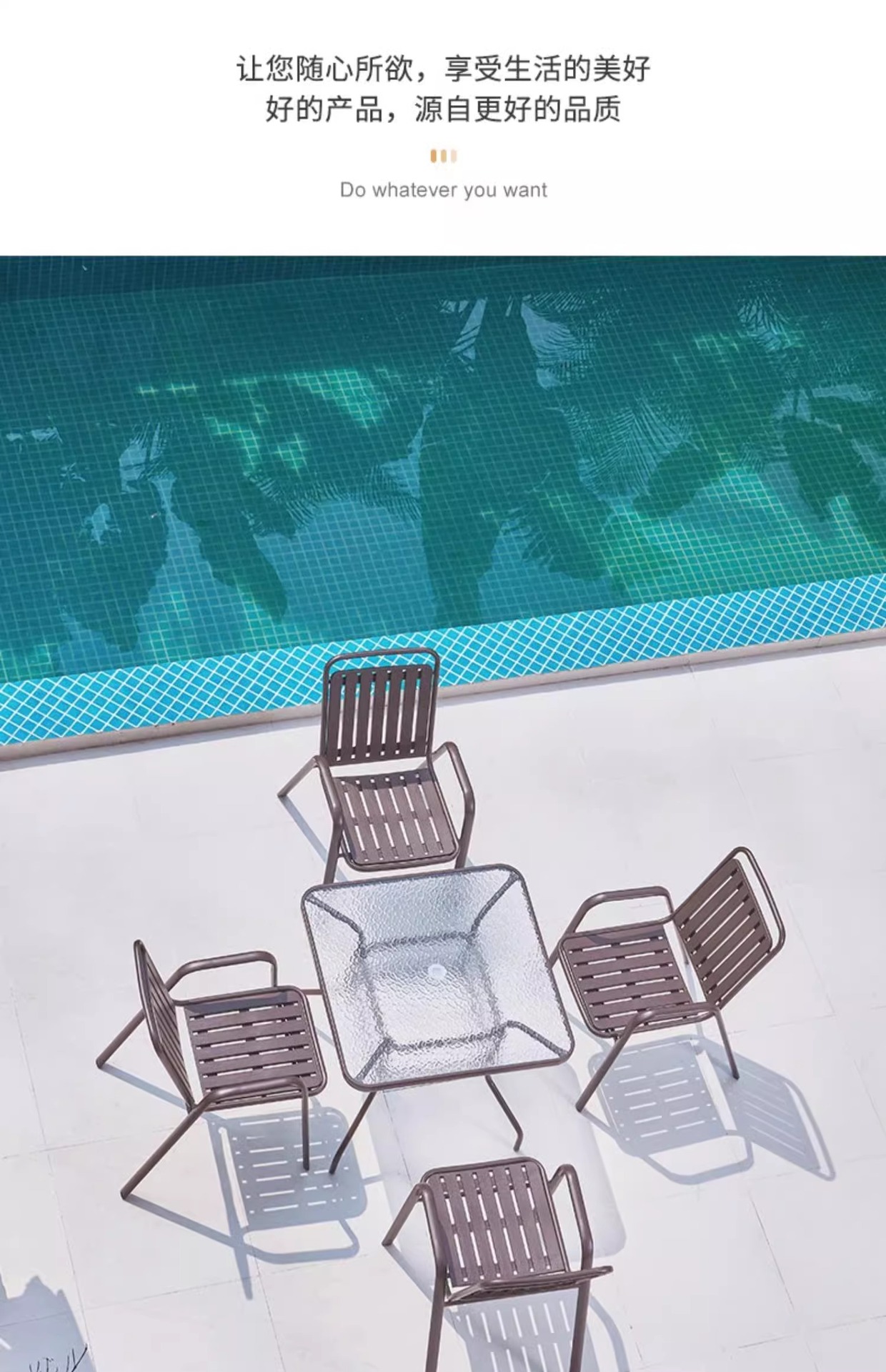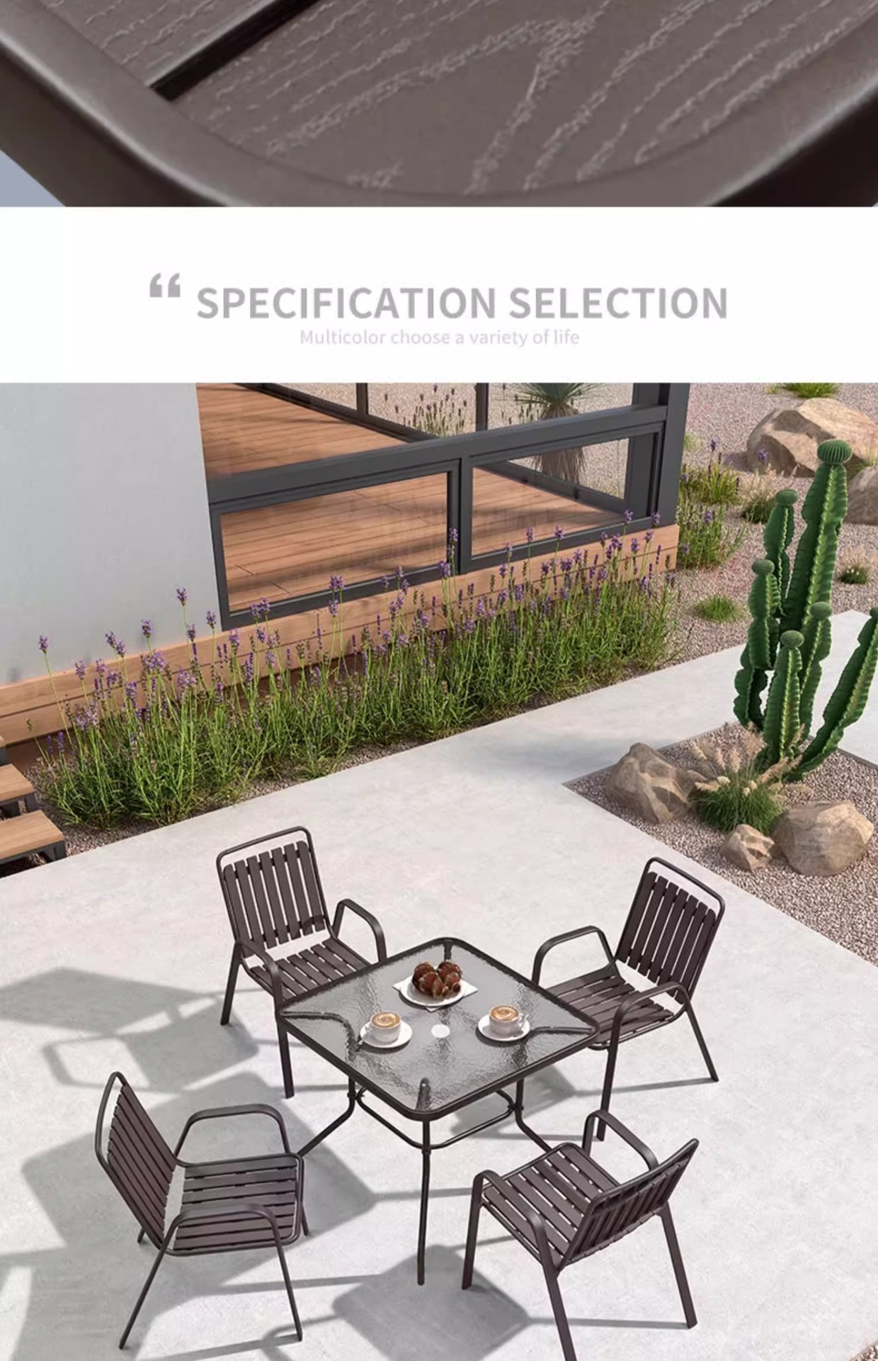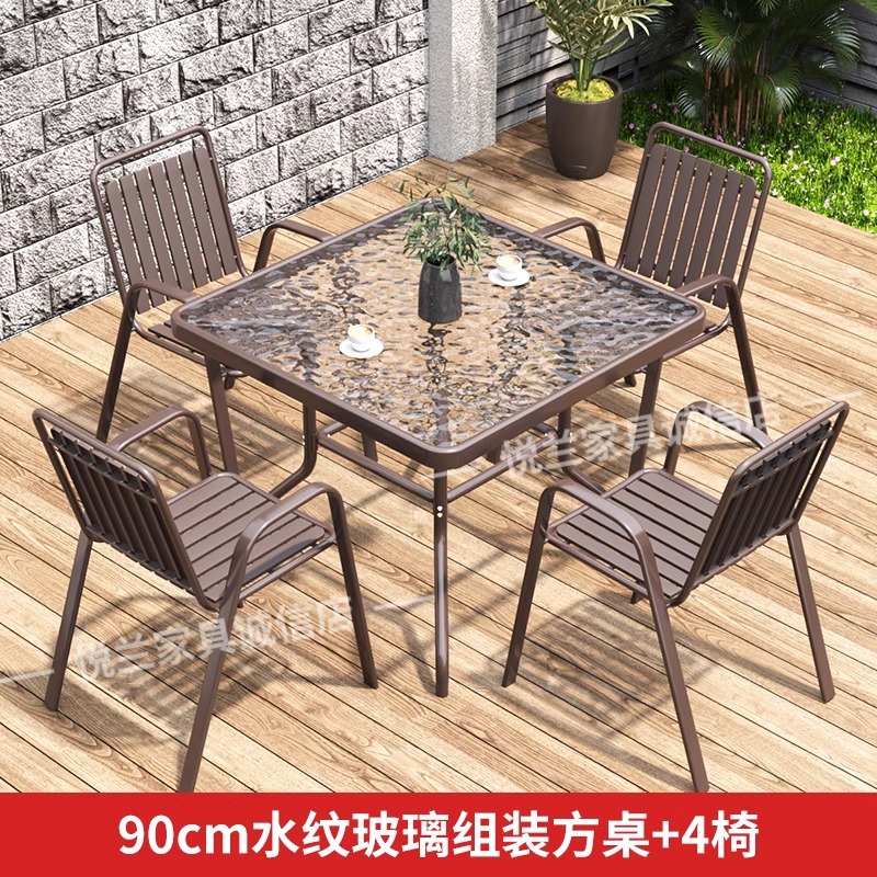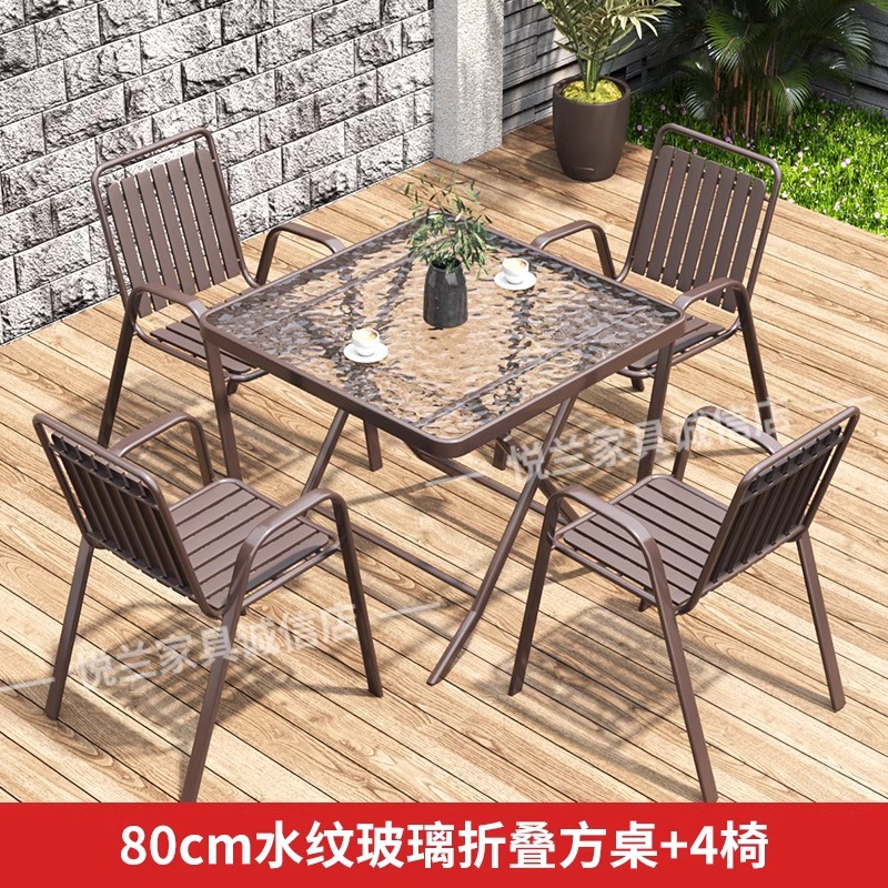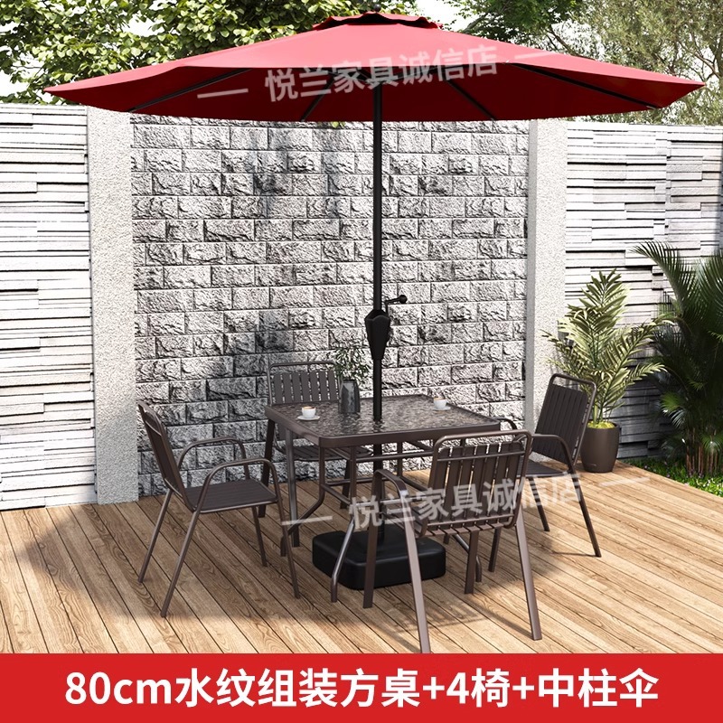 • 80cm 강화유리 조립식 사각 테이블 + 수직 의자 4개 + 빨간색 단일 상단 중앙 기둥 우산