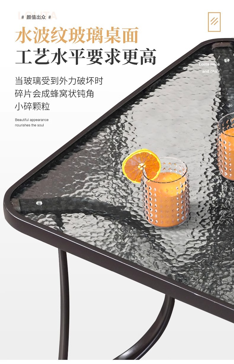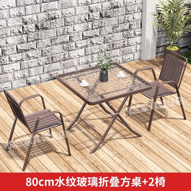 • 80cm 강화유리 접이식 사각 테이블 + 수직바 의자 2개