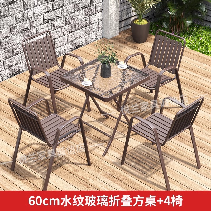 • 60cm 강화유리 접이식 사각 테이블 + 수직 스트립 의자 4개