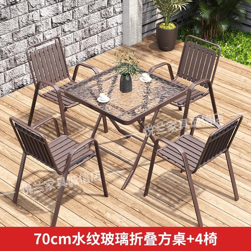 • 70cm 강화유리 접이식 사각 테이블 + 수직바 의자 4개