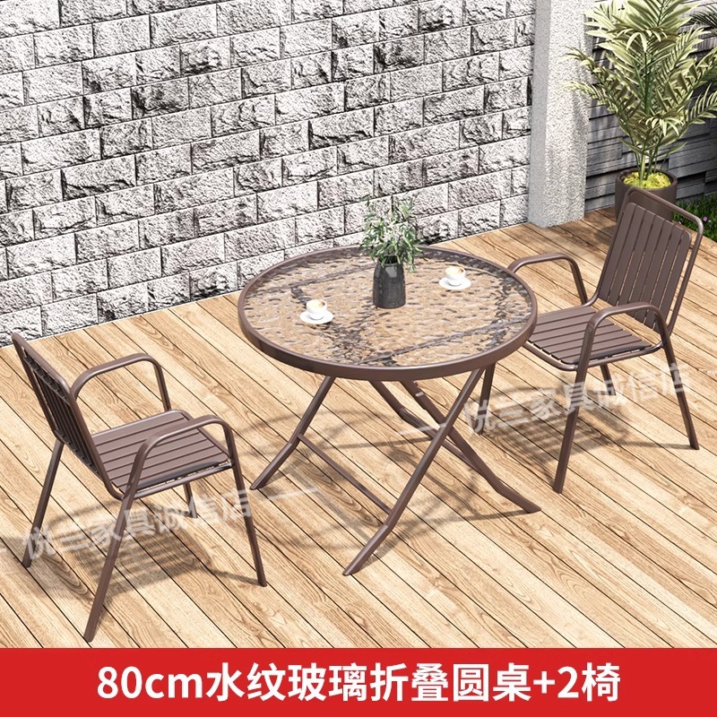 • 80cm 강화유리 접이식 원형 테이블 + 수직 의자 2개