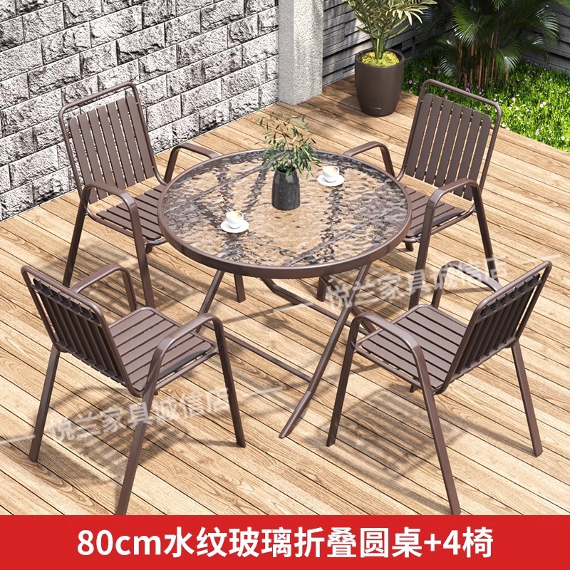 • 80cm 강화유리 접이식 원형 테이블 + 수직 의자 4개