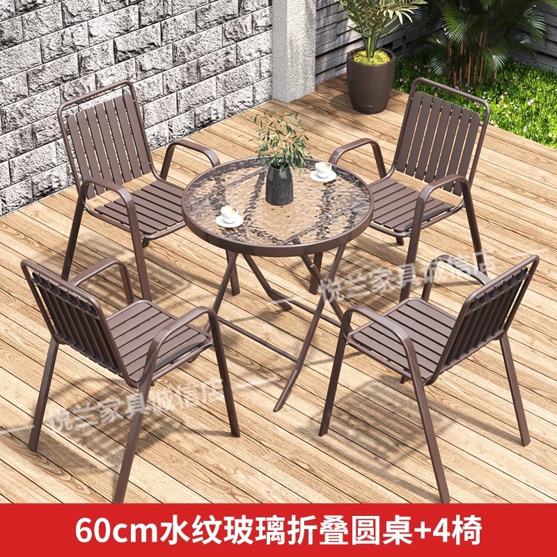 • 60cm 강화유리 접이식 원형 테이블 + 수직 의자 4개