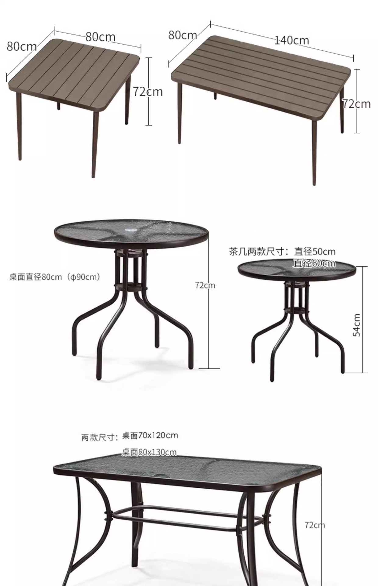 • 120*80cm 강화유리 조립식 긴 테이블 + 수직 의자 6개 + 빨간색 단일 상단 중앙 기둥 우산