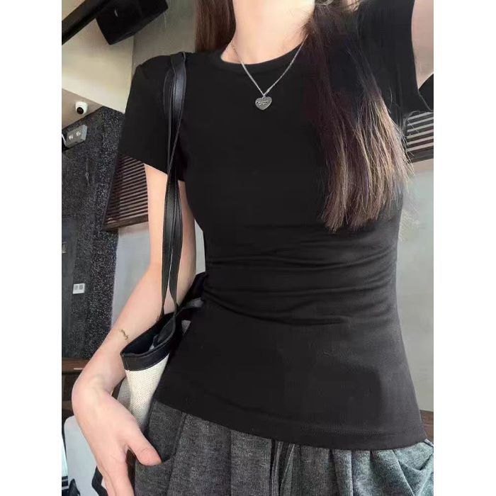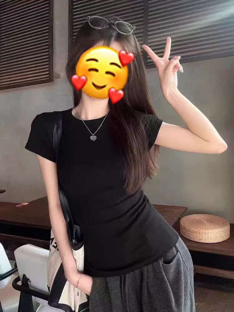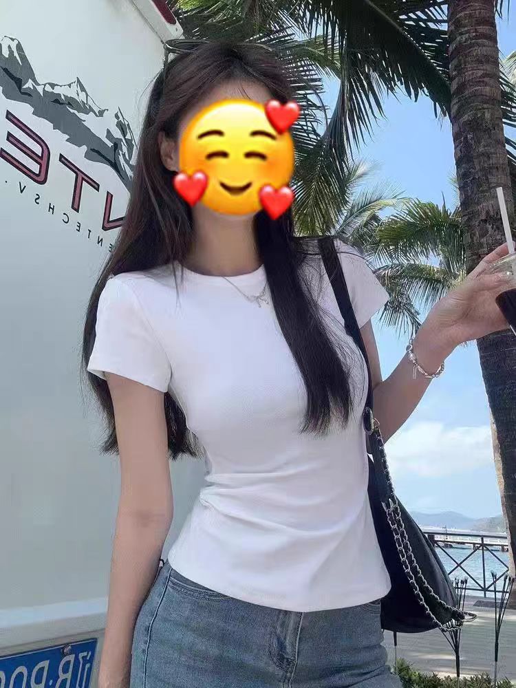 포춘 하우스 여성용 동일 스타일 핑크 어깨 반팔 티셔츠 여성용 꽉 끼는 꽉 조이는 허리 허리 스파이스 소녀 순수한 욕망베이스 탑 여성