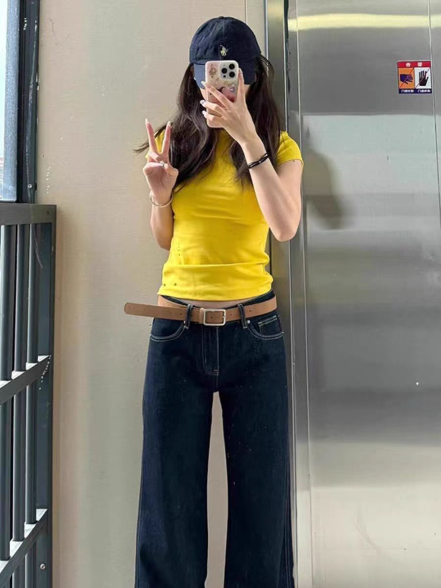 포춘 하우스 여성용 동일 스타일 핑크 어깨 반팔 티셔츠 여성용 꽉 끼는 꽉 조이는 허리 허리 스파이스 소녀 순수한 욕망베이스 탑 여성스토어 가기