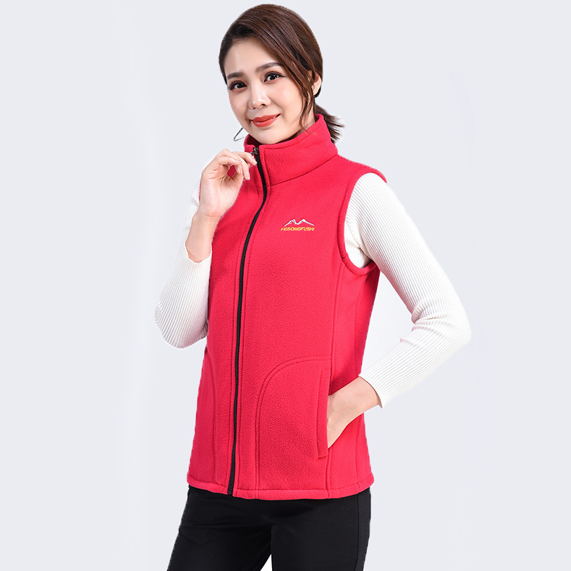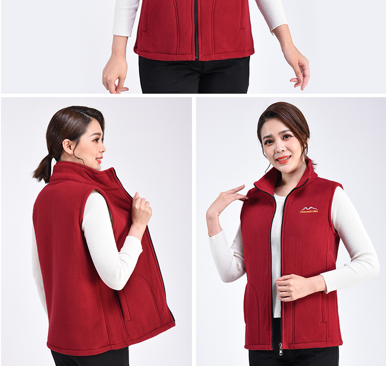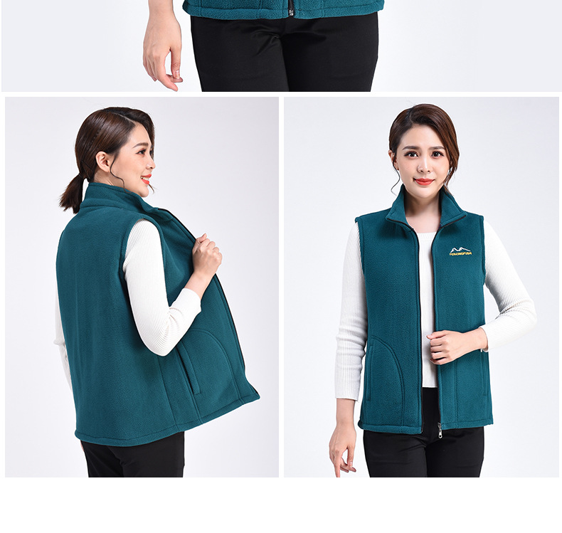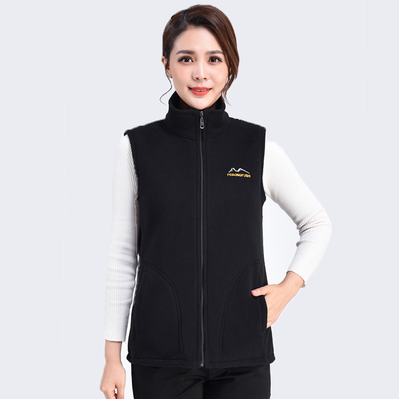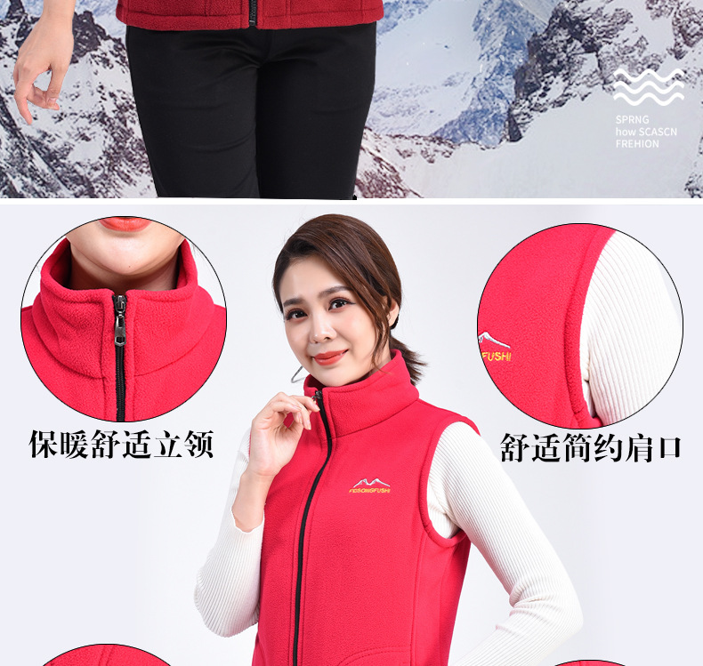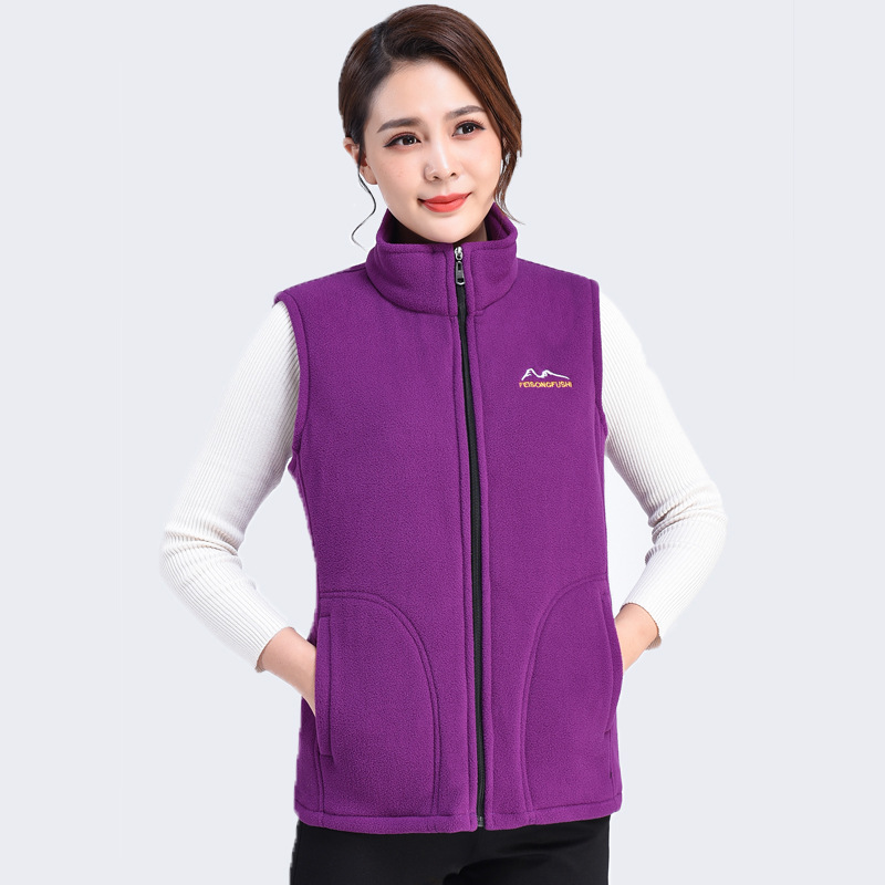 중년 및 노인 여성의 가을, 겨울 폴라 플리스 조끼 여성 스탠드 칼라 플러스 벨벳 플리스 조끼 느슨한 따뜻한 양복 조끼 어머니복