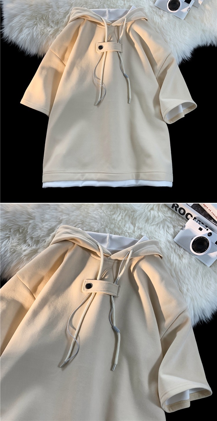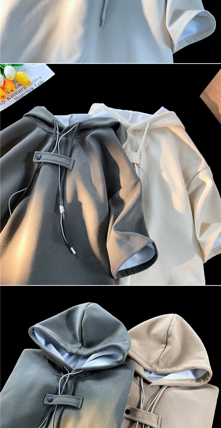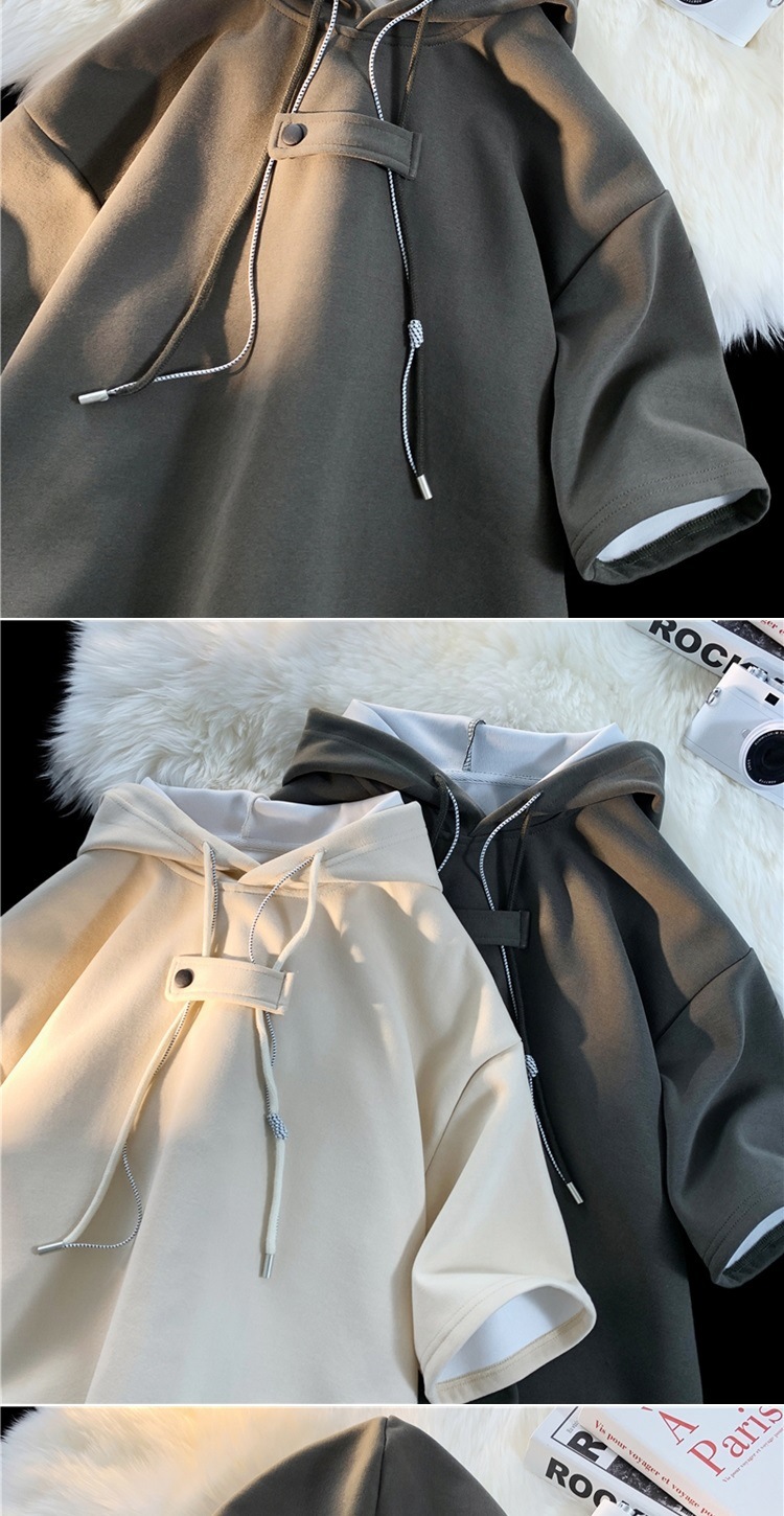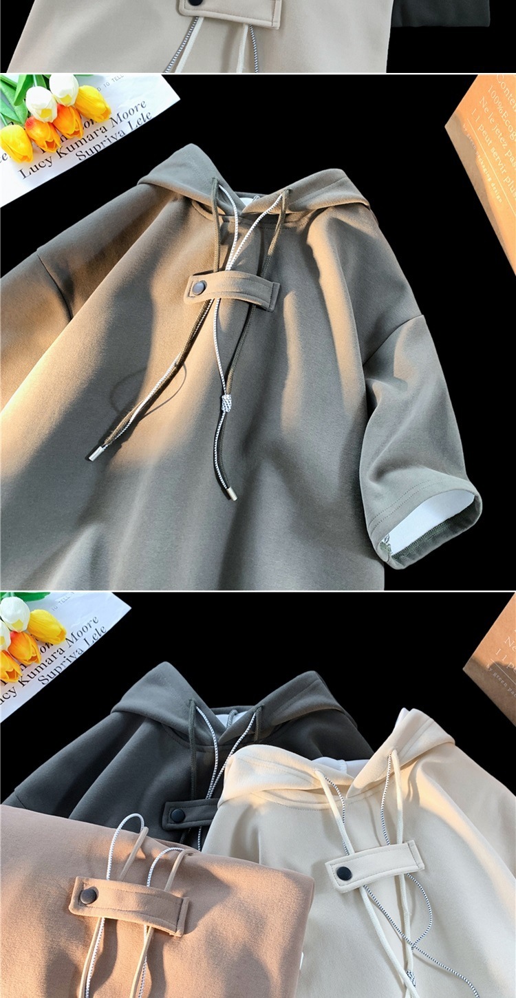 후드 티셔츠 남성 반팔 여름 얇은 느슨한 반소매 스웨터 아메리칸 인 패션 브랜드 올 매치 스포츠 캐주얼 탑
